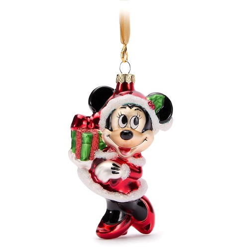 Santa Minnie Mouse Glass Ornament