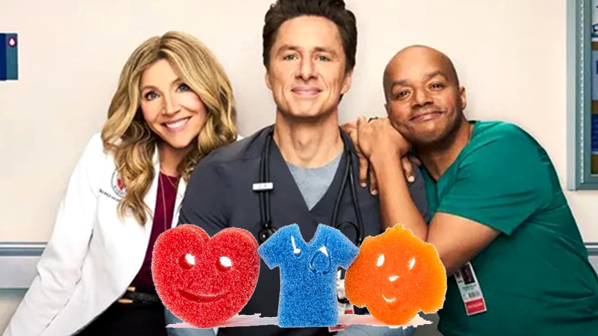 This week, after more than 15 years, the cast of Scrubs is returning to ABC with new episodes of the popular medical sitcom. And now you can make everyday household chores feel like hanging out with J.D., Turk, and Elliot thanks to a new Scrubs-themed sponge bundle from Scrub Daddy.
