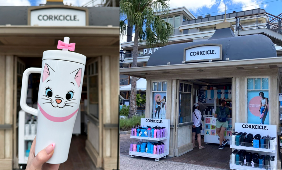 The Corkcicle stand at Disney Springs has expanded its character collection with a brand-new 22oz Cruiser featuring Marie. The crisp white cruiser features Marie’s face, blue eyes, and pink collar. Adding to the charm is a custom pink bow straw topper, mimicking Marie’s signature hair ribbon.