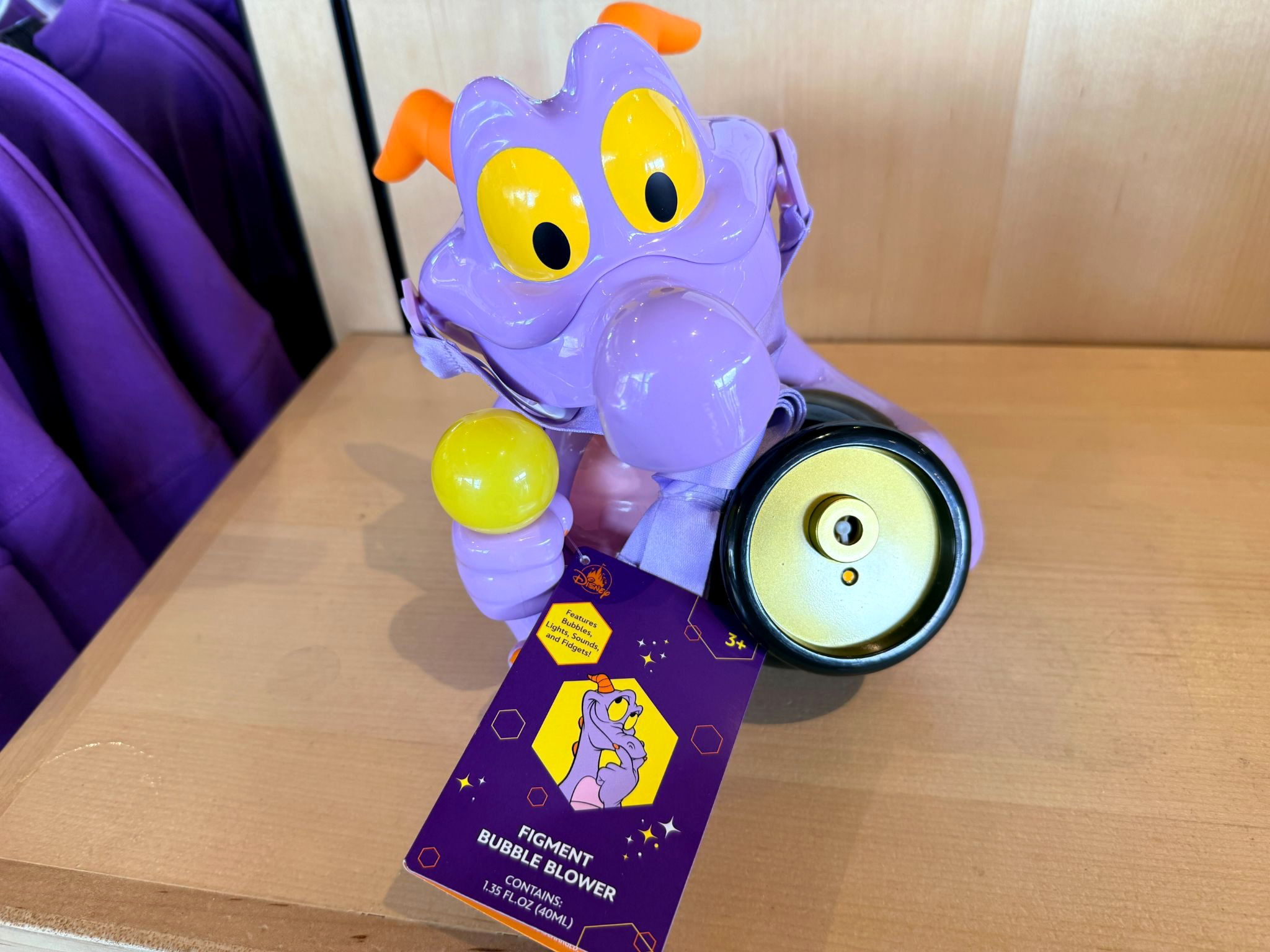 Disney recently revealed an incredible new Figment Bubble Blower, and Laughing Place had a chance to check it out! Designed to look like the imaginative purple dragon, the bubbles come from a pot he’s holding, while in his other hand Figment carries a lightbulb filled with creative ideas.