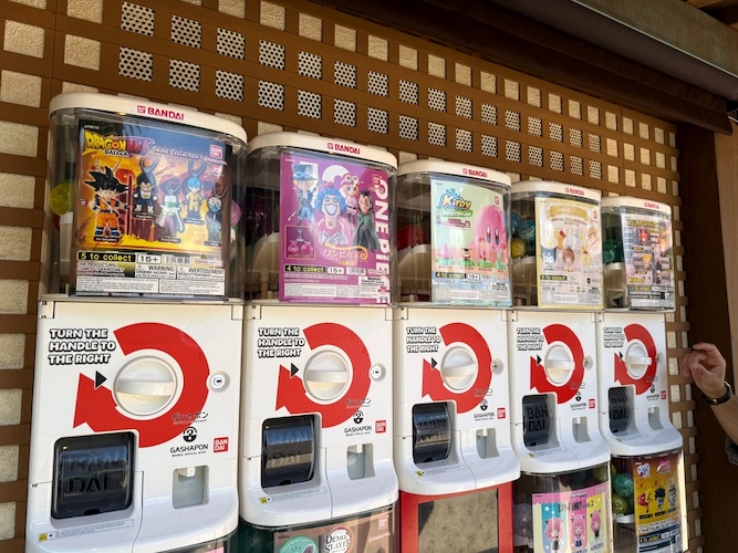 During a recent trip to Walt Disney World, we spotted brand new gachapon machines added to EPCOT’s Japan Pavilion. Located near the back of the pavilion outside Mitsukoshi Department Store, the toy capsule stand allows guests to grab mystery items from their favorite animes, video games, and more. For those who have never experienced gashapon, it works similarly to the mystery capsule machines found at malls and restaurants here in the states but have much higher quality prizes.