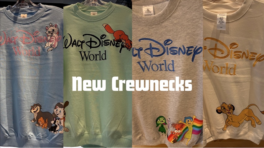 On a recent trip to Walt Disney World, Laughing Place spotted a new collection of character-themed crewnecks now available at Disney Springs’ Disney Style shop. The collection features a wrap around design with both printed characters and embroidery.