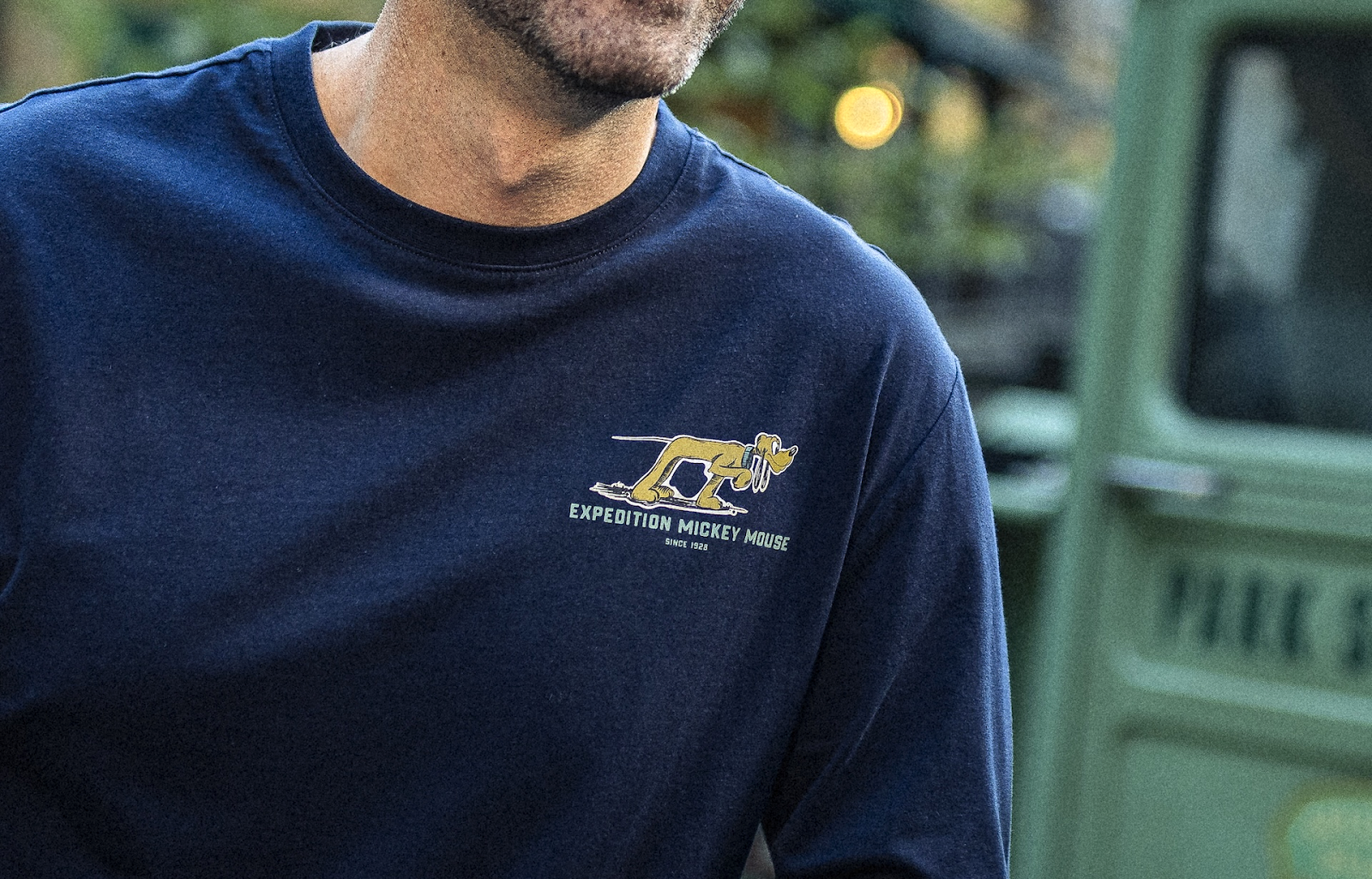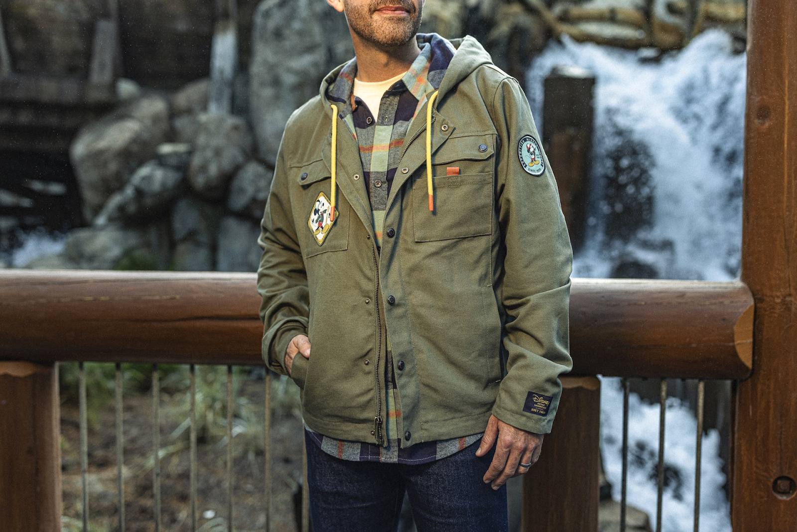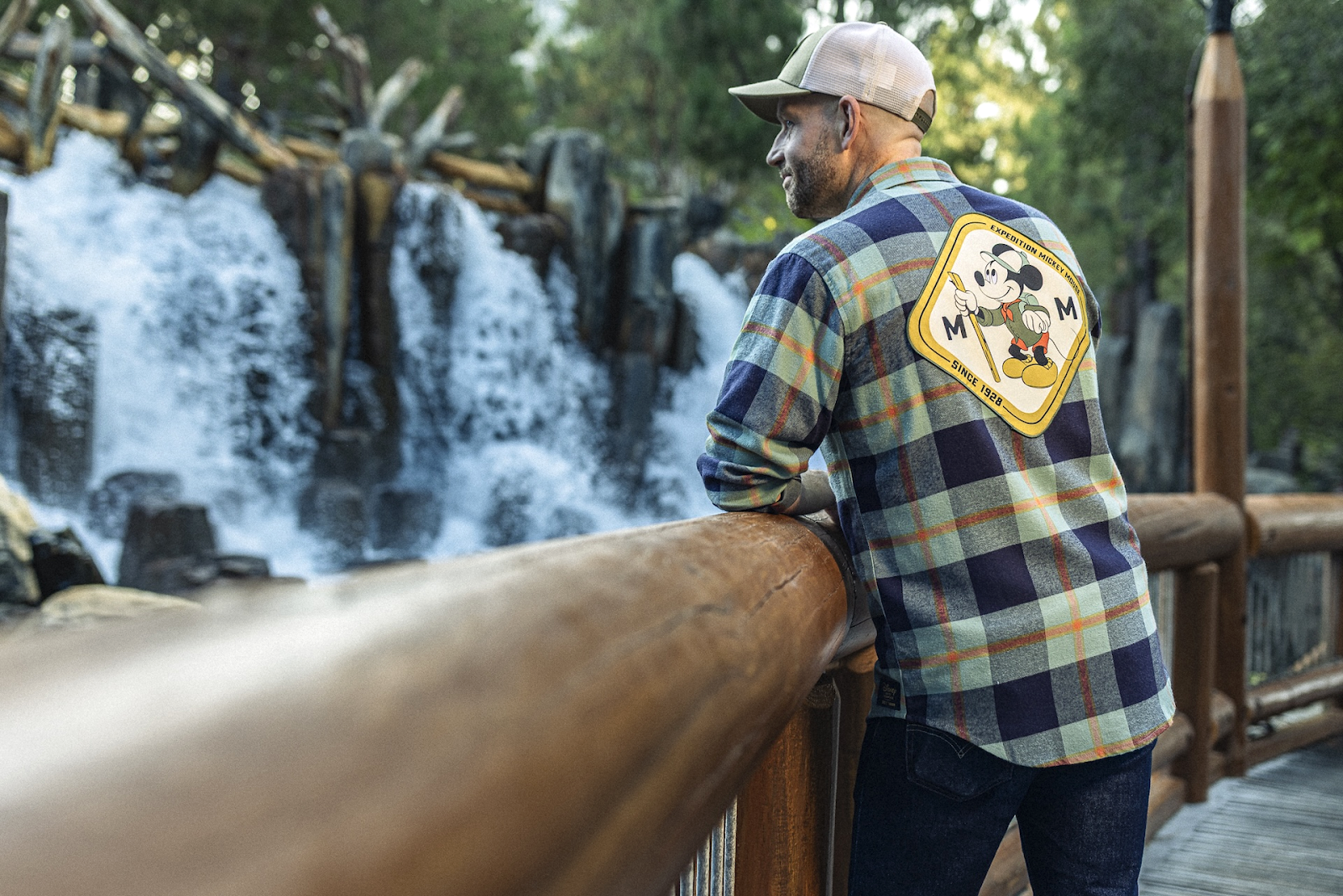 - Bret told the Disney Parks Blog, “For the past ten years, I’ve had a collection of posters published by Disney Fine Art’s Cyclops Print Works which are all centered around Mickey visiting different National Parks. I was really inspired by the WPA’s posters from the late 1930s. I think this apparel collection does a really good job of carrying that aesthetic into merchandise — the outdoors and National Parks were a huge inspiration… there are some great Easter eggs too! If you look at the pattern on the short sleeve button down shirt, tucked in amongst lanterns, trees, and even Pluto, you may catch a glimpse of a few park icons like Big Thunder Mountain, The Matterhorn, and Everest. It was fun to add elements that tied Mickey’s exploration back to the Disney Parks. I can’t think of anywhere else where you can go and get a true representation of so many different landscapes.”