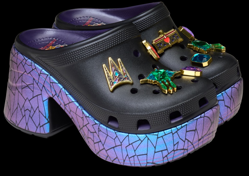 Embrace your inner Disney villain with these high heeled Crocs. Featuring a black, purple, and blue design with themed Jibbitz inspired by Evil Queen’s broach, crown and jewelry box, these statement pieces will run you $94.99. They are not available just yet, but you can join the waitlist here.