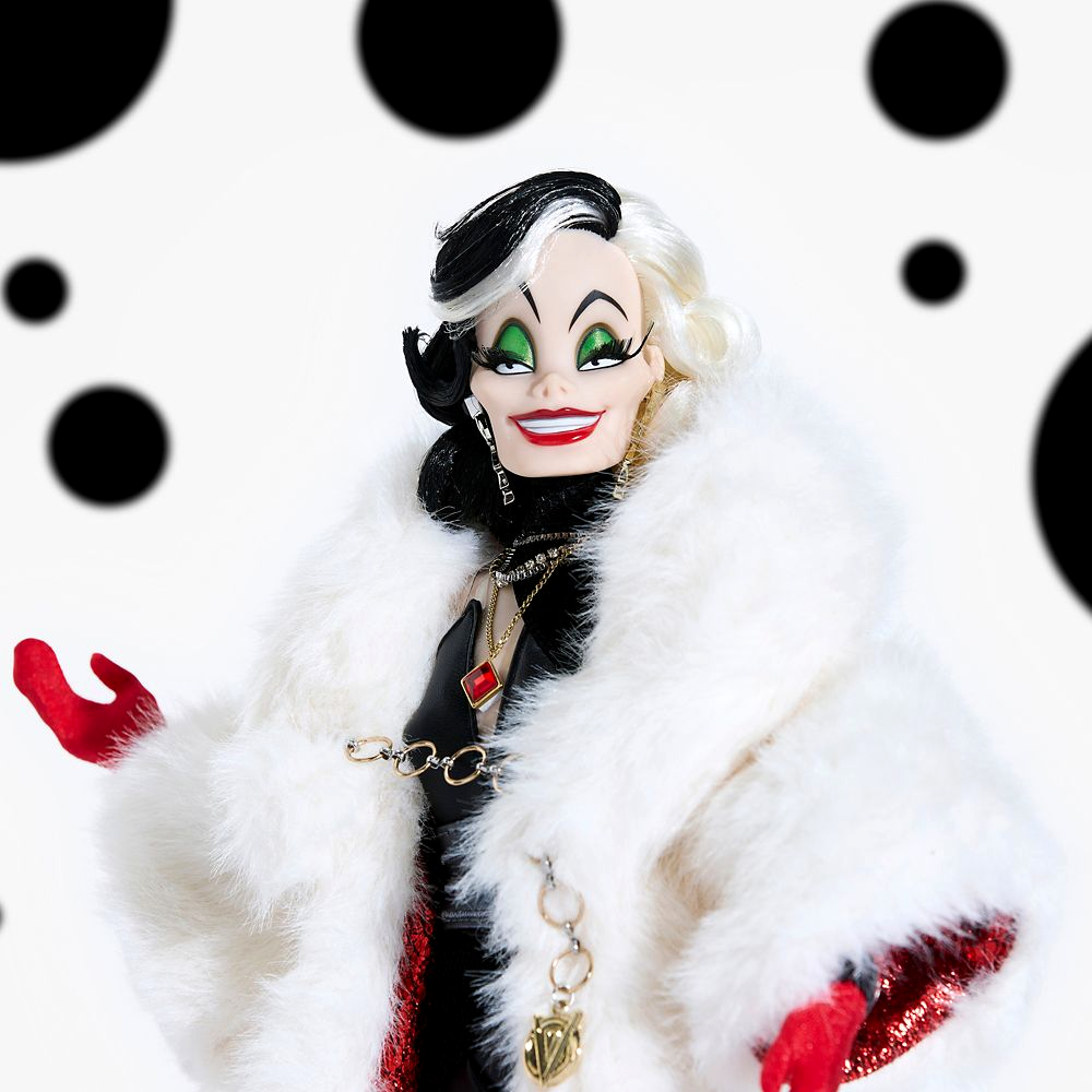 - Disney is paying homage to this dramatic baddie (and 65 years of 101 Dalmatians) with a limited edition doll that emphasizes Cruella's love of a black and white color scheme.