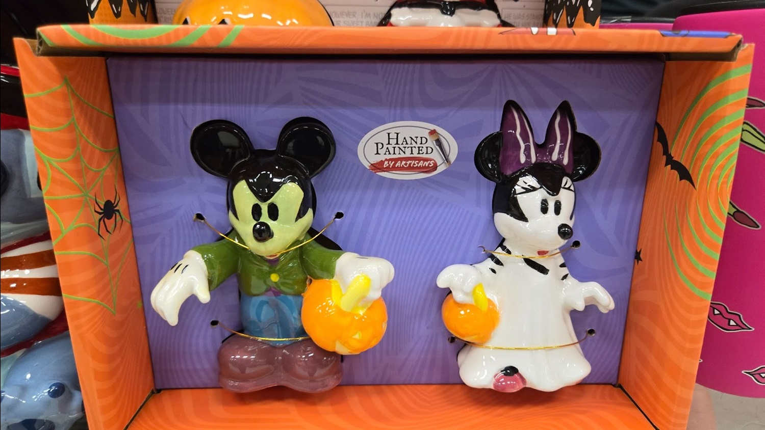 Hand-painted figurines of Mickey and Minnie as Frankenstein’s Monster and the Bride of Frankenstein retail for $12.99.