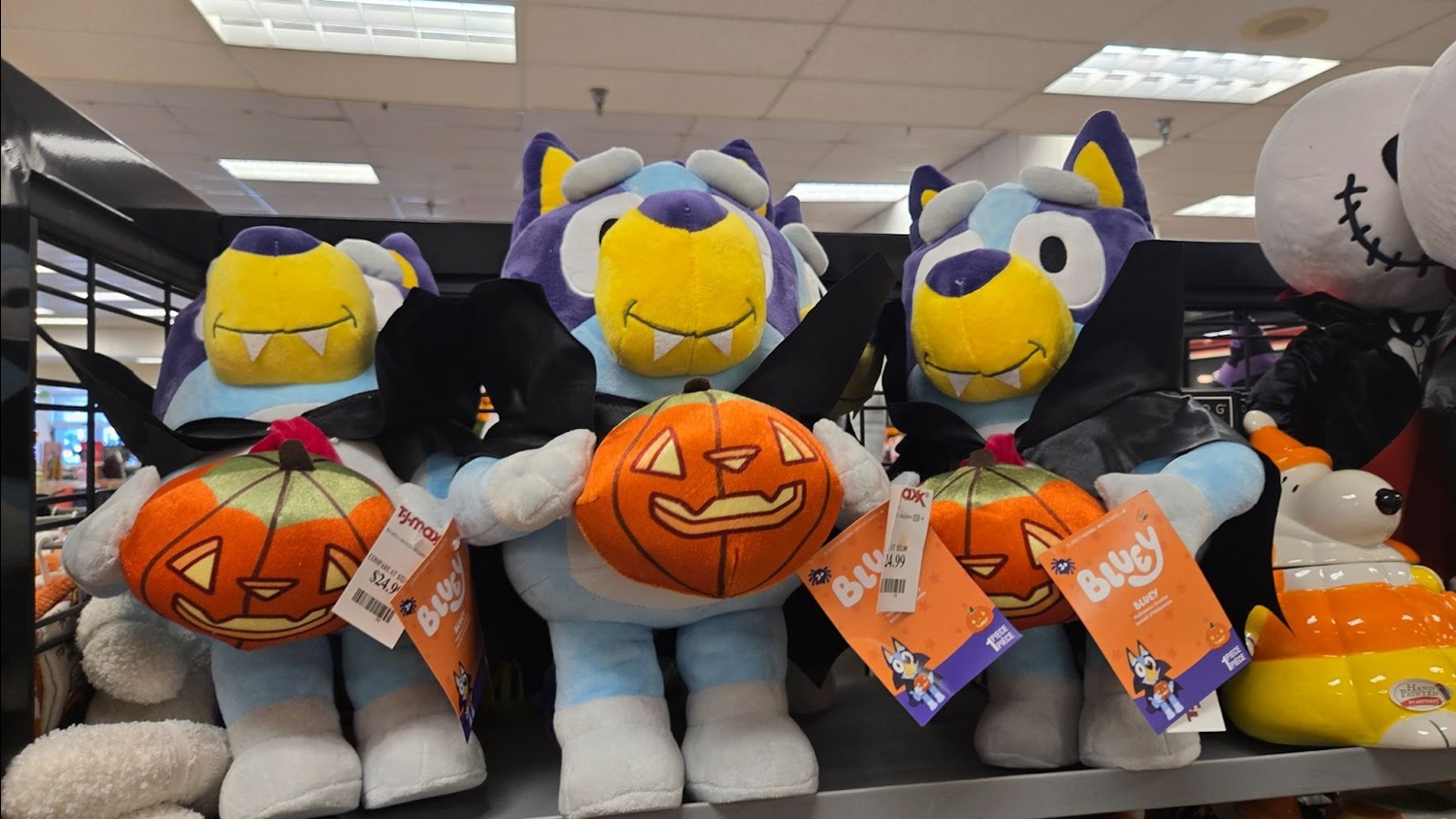 The littlest ones will love a spooky plush of Bluey dressed as a vampire holding a pumpkin – available for $24.99.