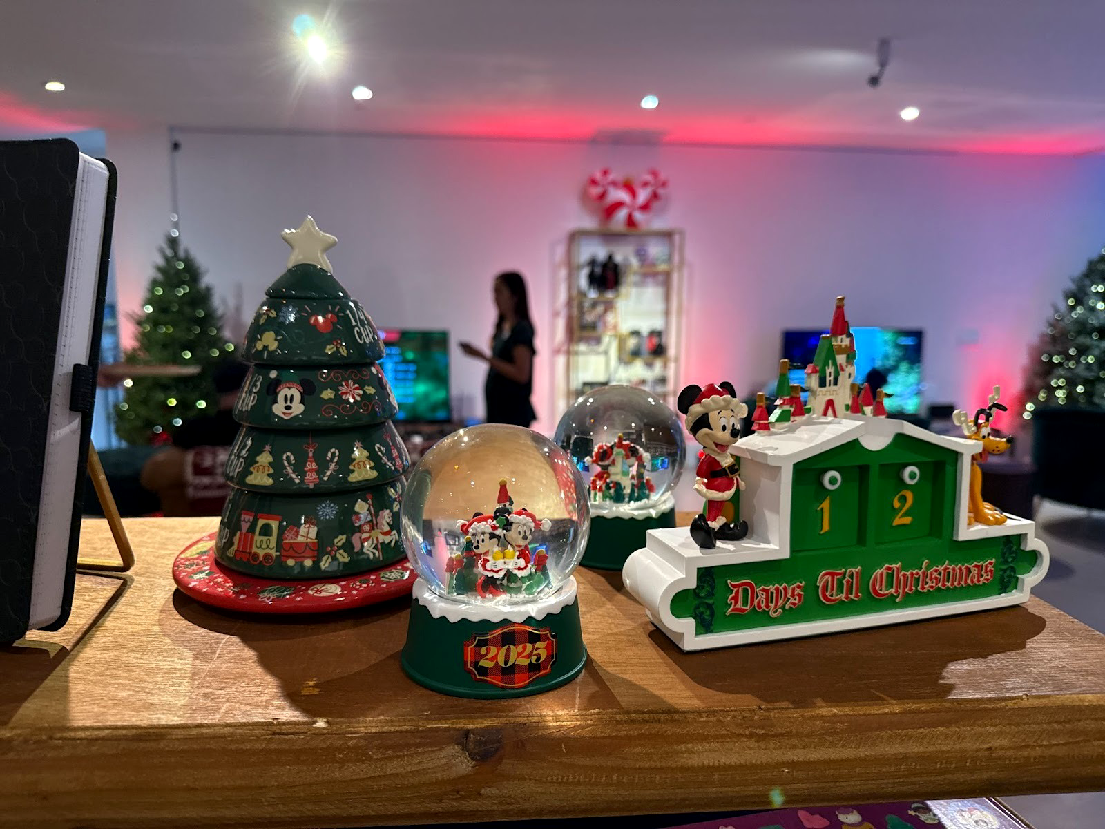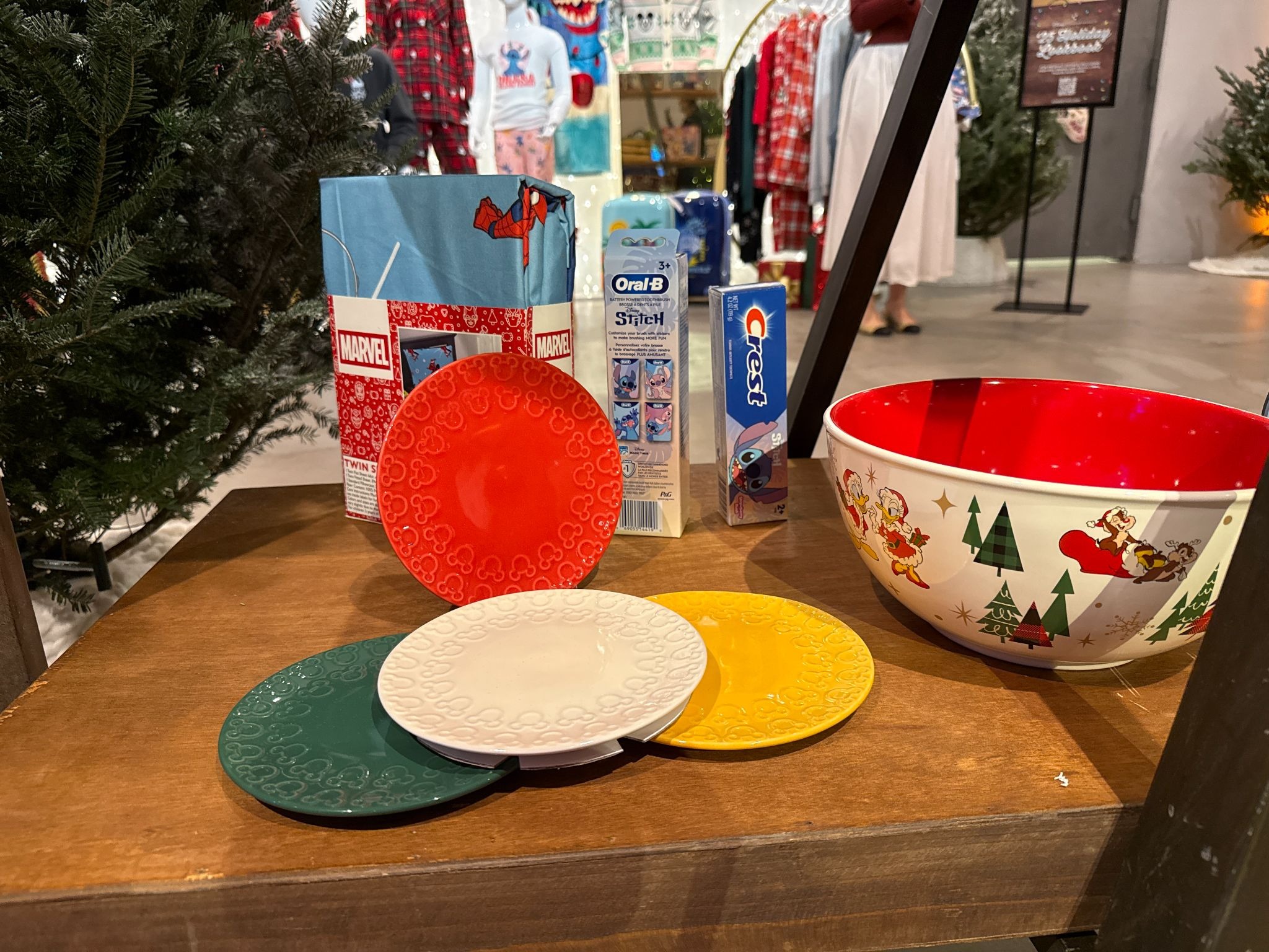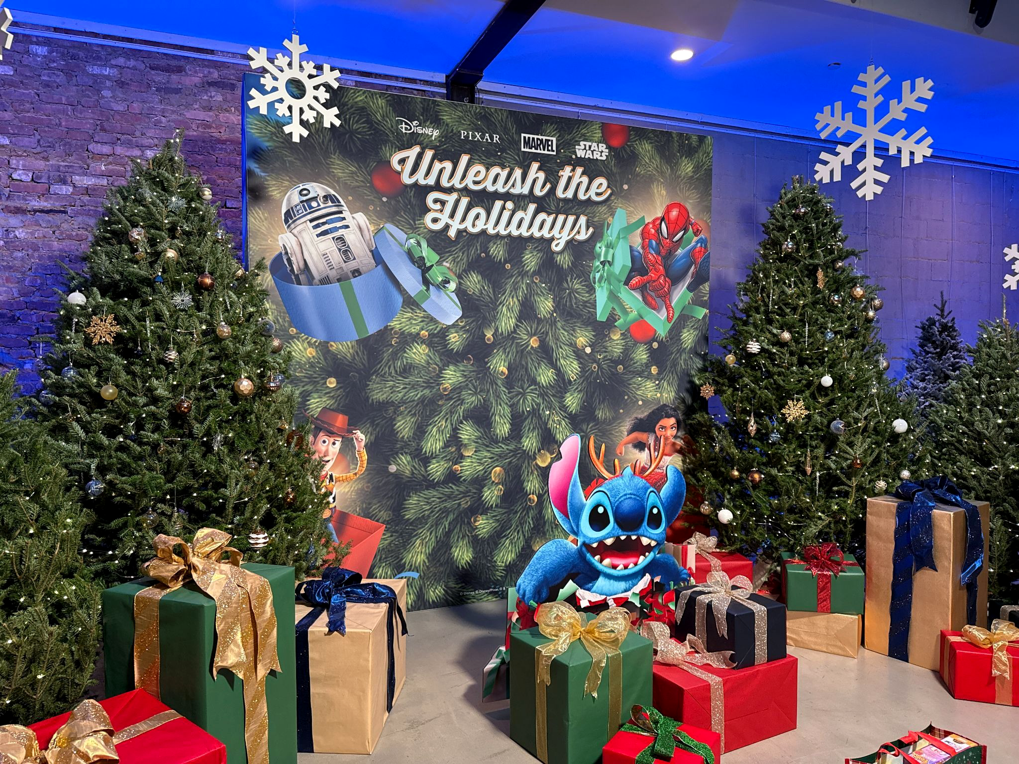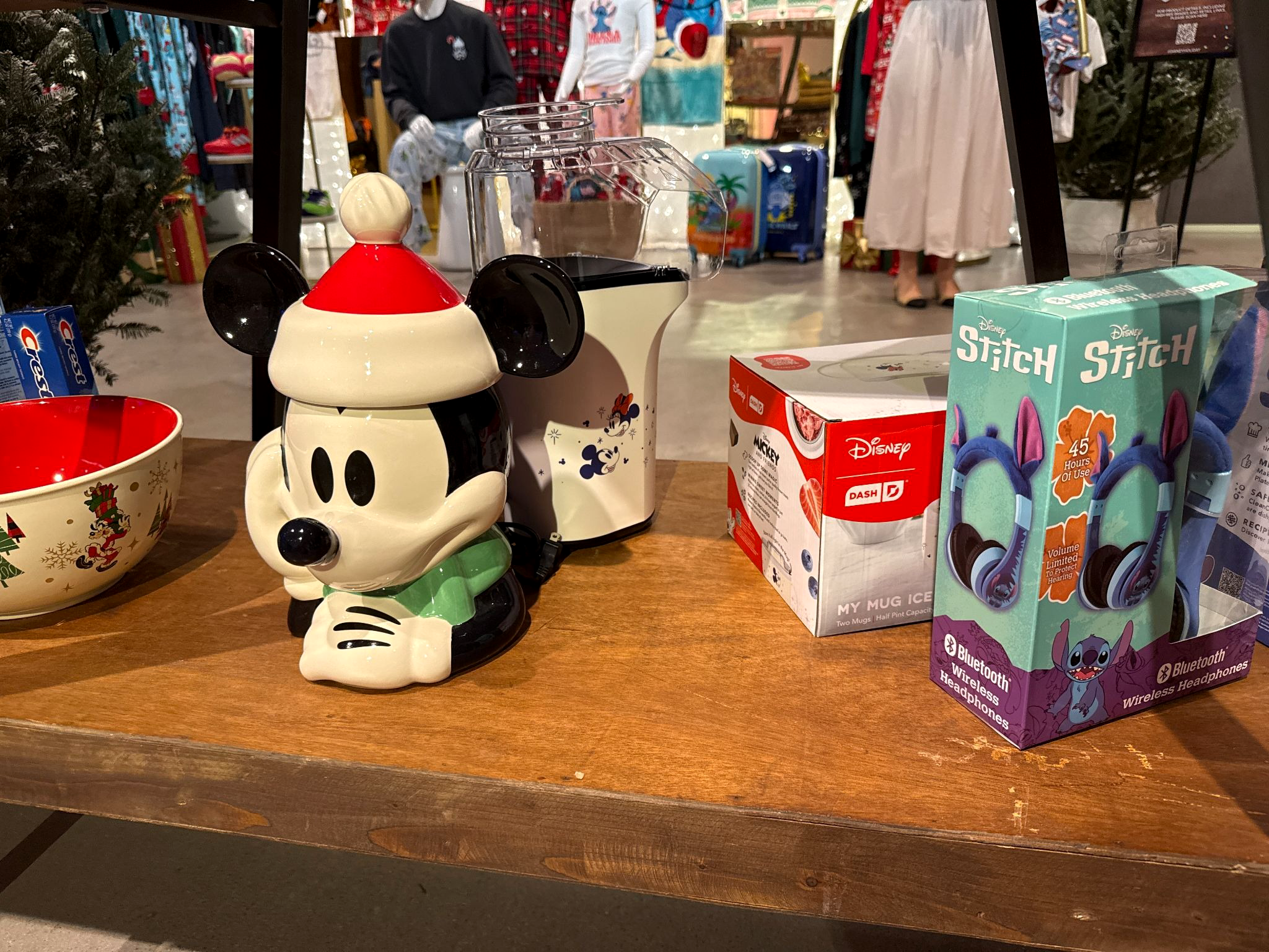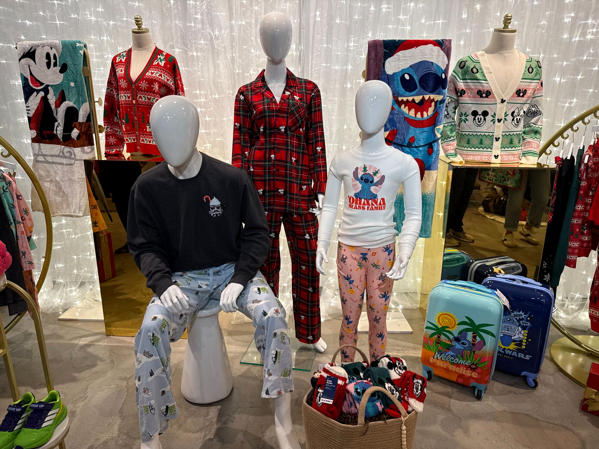 Holiday mornings just got merrier thanks to Old Navy’s Jingle Jammies collection, which brings an extra sprinkle of Disney magic to the brand’s beloved matching family sleepwear. Mannequins at the showcase modeled three of the limited-edition prints — classic red plaid with Mickey & Friends, an out-of-this-world Star Wars pattern featuring festive Stormtroopers, and an Ohana Means Family look starring Stitch. Each design comes in sizes for the whole family, ranging from $5.99–$54.99. On the cozy side, the Mickey and Friends Holiday Cardigan from Disney Store ($79.99) offers a Fair Isle-inspired knit with snowflakes, ornaments, and Mickey icon buttons, perfect for layering on chilly nights. Completing the apparel showcase, the American Tourister Disney Characters Kids Carry-Ons ($89.99) in cheerful Stitch and Star Wars designs prove that holiday magic doesn’t have to stay home — it can roll right along with you.