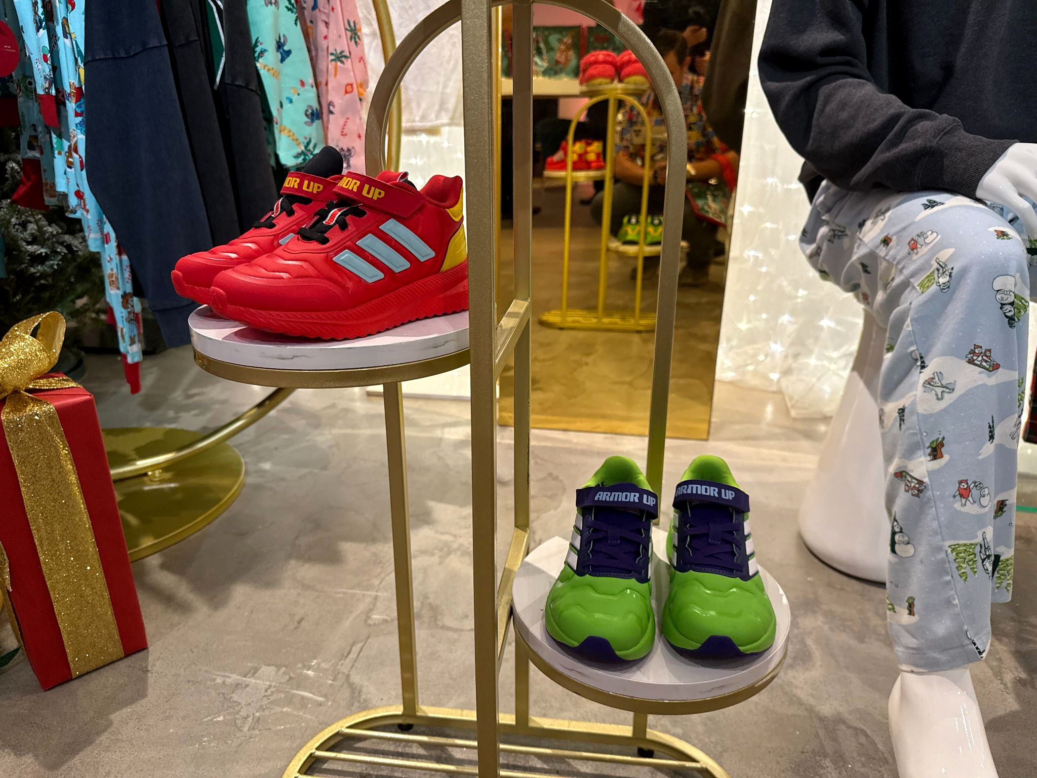 To complete the head-to-toe looks, Adidas brought a heroic punch of color to the showcase with two new Marvel-inspired sneaker designs. The Marvel Iron Man X_PLRPATH Shoes for Kids ($52.00) feature bold red and gold panels, reflective of Tony Stark’s armor, while Cloudfoam midsoles keep every step light and springy. Right below, the Marvel Iron Hulk Runfalcon 5 Shoes for Kids ($42.00) combine bright green and purple tones with easy hook-and-loop straps for comfort and convenience. Designed for little superheroes in motion, both pairs fuse playful design with everyday wearability—ideal for unwrapping presents or dashing through the snow.