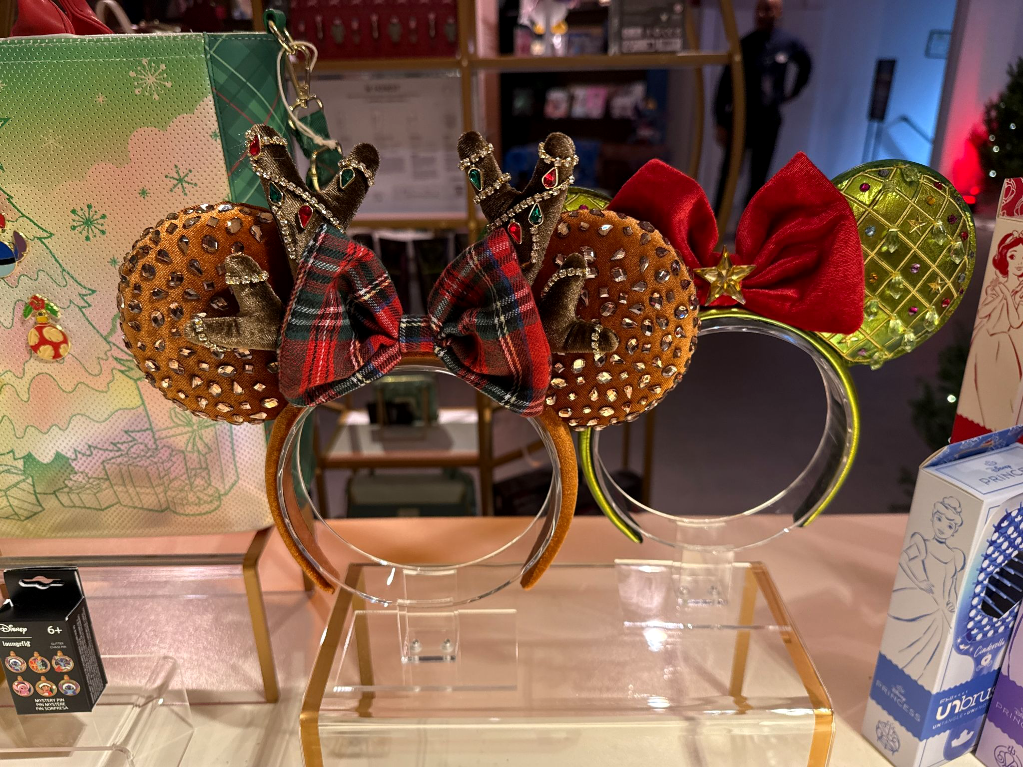 No Disney holiday look is complete without a little sparkle on top, and BaubleBar’s latest Minnie Mouse ear headbands deliver just that. The Minnie Mouse Reindeer Ear Headband by BaubleBar ($39.99) channels festive flair with plush velvet ears dotted in golden rhinestones, glittering antlers wrapped in jewel-toned gems, and a tartan bow that ties the reindeer-inspired look together. Right beside it, the BaubleBar Green Holiday Ear Headband ($39.99) offers a bolder pop of color, pairing metallic green faux leather ears with a shimmering red velour bow topped by a golden star charm. Both designs bring a touch of glamour to park days, holiday parties, or cozy nights spent watching Disney holiday specials — because it’s always the season to shine.