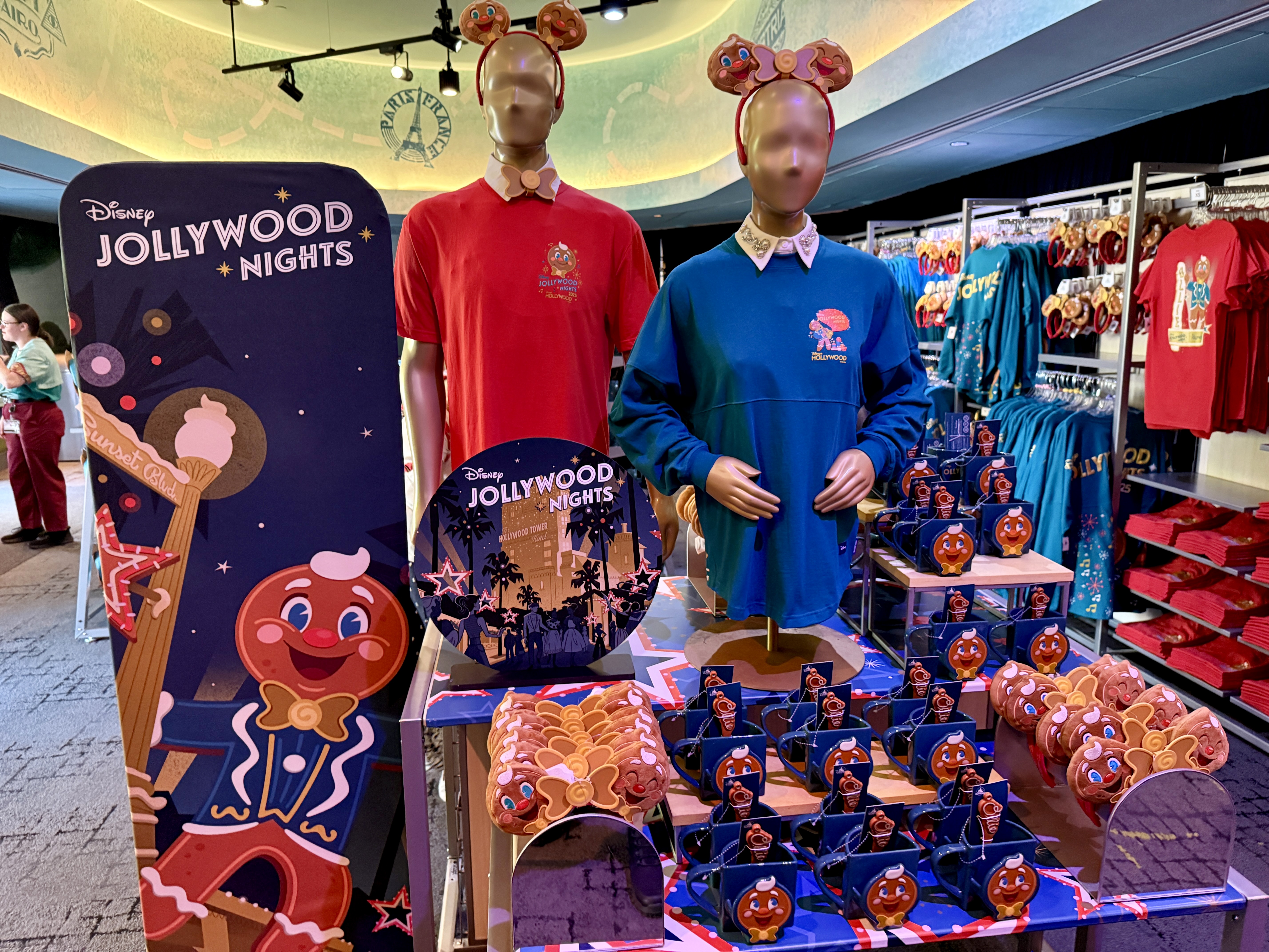 Disney Jollywood Nights combines the glitz and glitter of Hollywood with the merry-mint and mistletoe of the Christmas season for a special separately ticketed party at Disney's Hollywood Studios. With the closure of Stage 1 Company Store, guests can now find all the exclusive merchandise items at the exit of the Mickey Shorts Theater. In fact, guests even have the opportunity to pose with a fun character backdrop inside the temporary store.