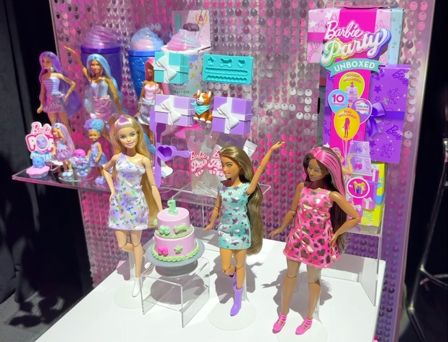 Available now, the Barbie® Party Unboxed™ Doll and Accessories Assortment ($19.99) packs 10 surprises into a gift-box themed package with party fashion, a pet, cake-decorating tools, and color-change features on both doll and pet.