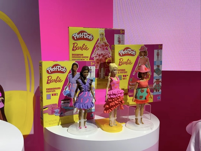 Launching in Target stores and online in June 2025 and widely available by August, the PLAY-DOH Barbie collection from Hasbro and Mattel introduces fashion play through modeling compound. Items include the PLAY-DOH Barbie Designer Fashion Show Playset, the PLAY-DOH Barbie Designer Dolls Assortment, and the PLAY-DOH Barbie Designer Pattern Packs, combining arts & crafts with imaginative fashion creation.
