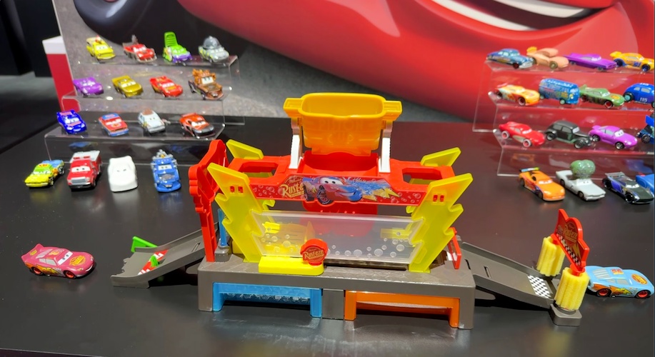 Complementing the playset is the Color Changers Assortment ($6.49, 3+), featuring 1:55 scale cars that transform between two designs with temperature-activated water play. Characters are drawn from the Cars films and Cars on the Road, giving fans new ways to enjoy their favorites.