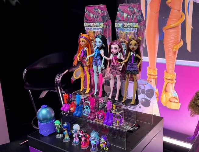 The Monster High® Potions™ Crystal Ball Assortment ($9.99, Fall 2025) delivers fright-sized surprises with a three-step potion reveal. Each crystal ball uncovers a 3-inch fan-favorite doll, a charm, and a fortune card. Also in the surprise category, Monster High® Buried Secrets Wave 1 ($14.99) offers a mystery unboxing experience with one of four cozy creepover-ready dolls hidden inside a sarcophagus, along with accessories for spooky slumber party scenes.
