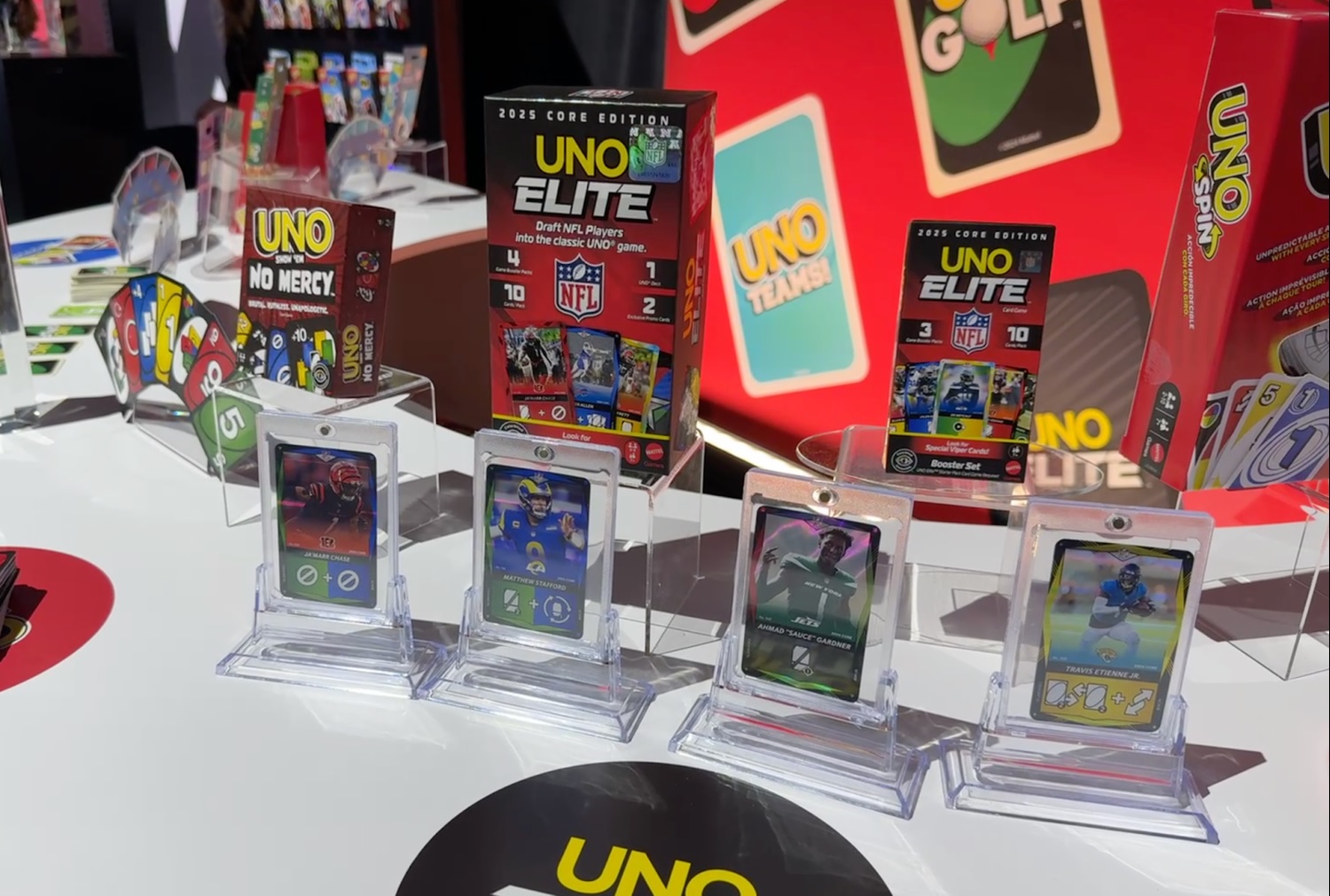 UNO levels up with UNO Elite™, a new collectible gameplay experience packed with sports fandom. Available now, the UNO Elite™ NFL 2024 Core Edition Starter Pack ($14.99) and Draft Packs ($4.99) introduce randomized Elite Action Cards and Foil Cards to spice up classic UNO mechanics. Looking ahead, the UNO Elite™ NFL 2025 Core Edition Starter Pack ($14.99, Fall 2025) features 112 standard UNO cards plus four Game Booster Packs, each packed with new tactics through Dual and Wild cards. Expand the fun with the UNO Elite™ NFL 2025 Core Edition Booster Set ($5.99, Fall 2025), which includes 3 booster packs of 10 Elite Action Cards each. For serious collectors and players, the UNO Elite™ NFL 2025 Core Edition Game Booster Box ($59.99, Fall 2025) offers 30 full packs—complete with guaranteed Wild Cards and the chance to pull Special Wild Elite Action Cards to truly dominate the table.