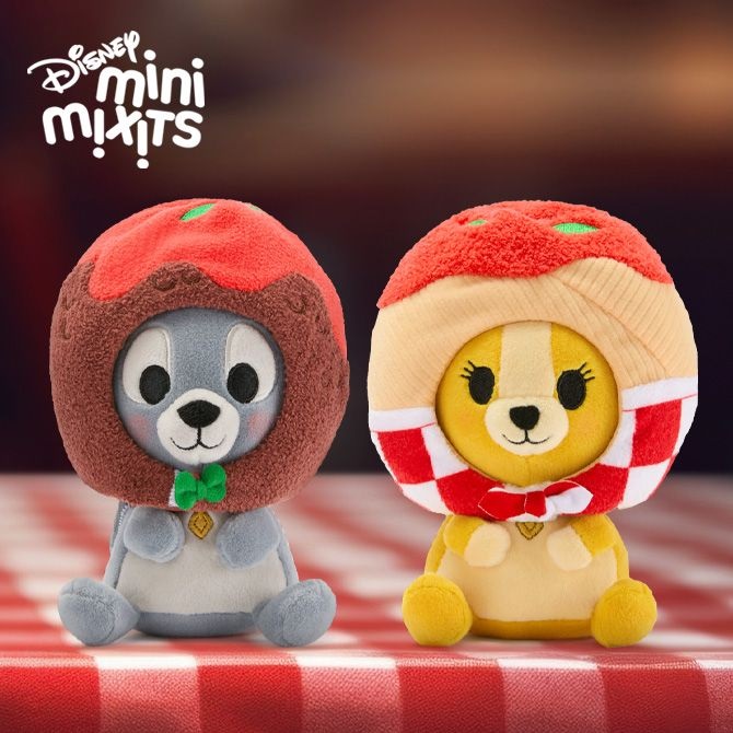 How much are you loving the Disney Mini Mixits line of micro plush? The Disney Store collection features a playful assortment of characters wearing colorful, swappable headwear themed to attractions, seasonable symbols, and now food, as Lady and Tramp join the collection.