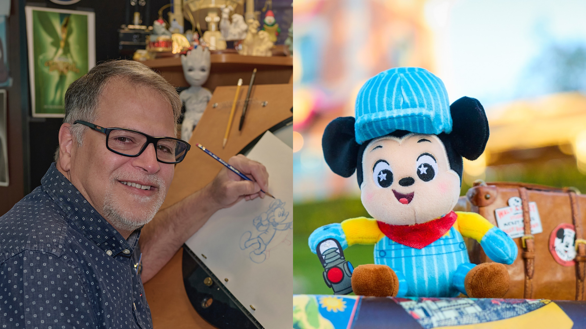 Train Conductor Mickey Mouse Wishables Plush Comes to Disney Springs with Its Artist in Tow