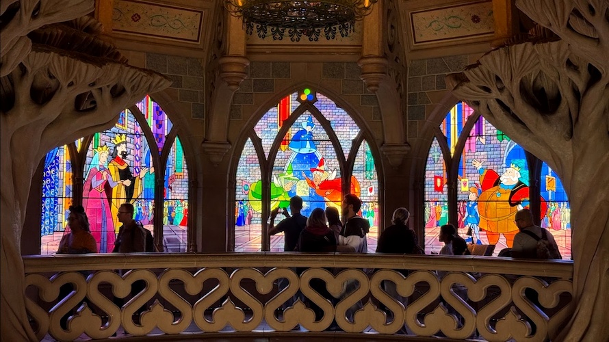 - Disneyland Paris offers guests the chance to walk through the story of Sleeping Beauty through their castle, similar to Disneyland Park in California. Where this one is different though, is that instead of narrow corridors and small show scenes winding through the castle, the Disneyland Paris version is a second floor gallery featuring the aforementioned book on display, other props, murals, tapestries and more that retell the story.