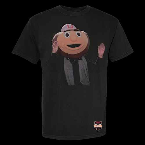 College GameDay Last Pick Brutus Tee ($40): The design features Corso, adorned in a scarf, wearing the Brutus the Buckeye mascot head.