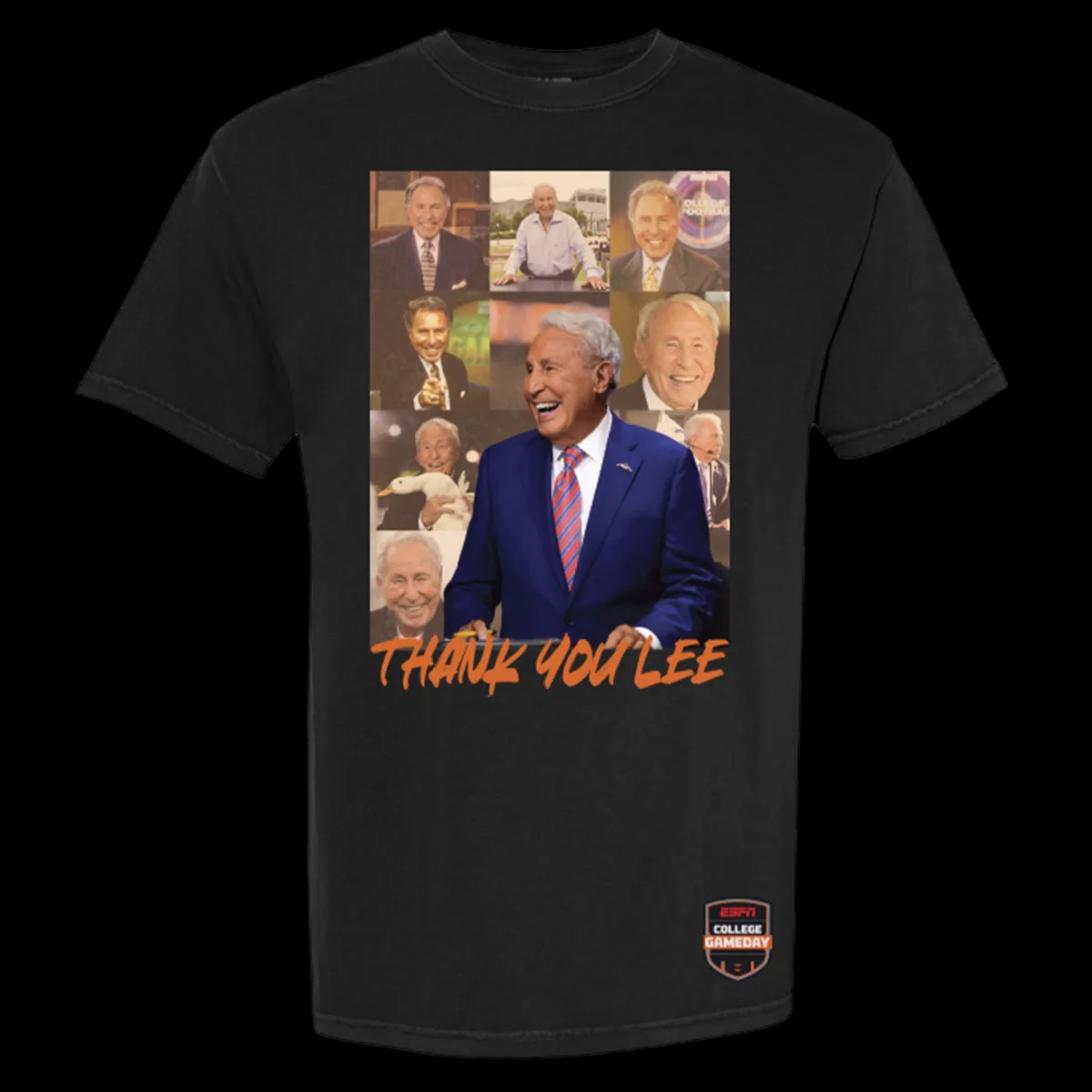 College GameDay Thank You Lee Tee ($40): This black t-shirt features a photo montage of Lee Corso and the message “Thank you Lee."