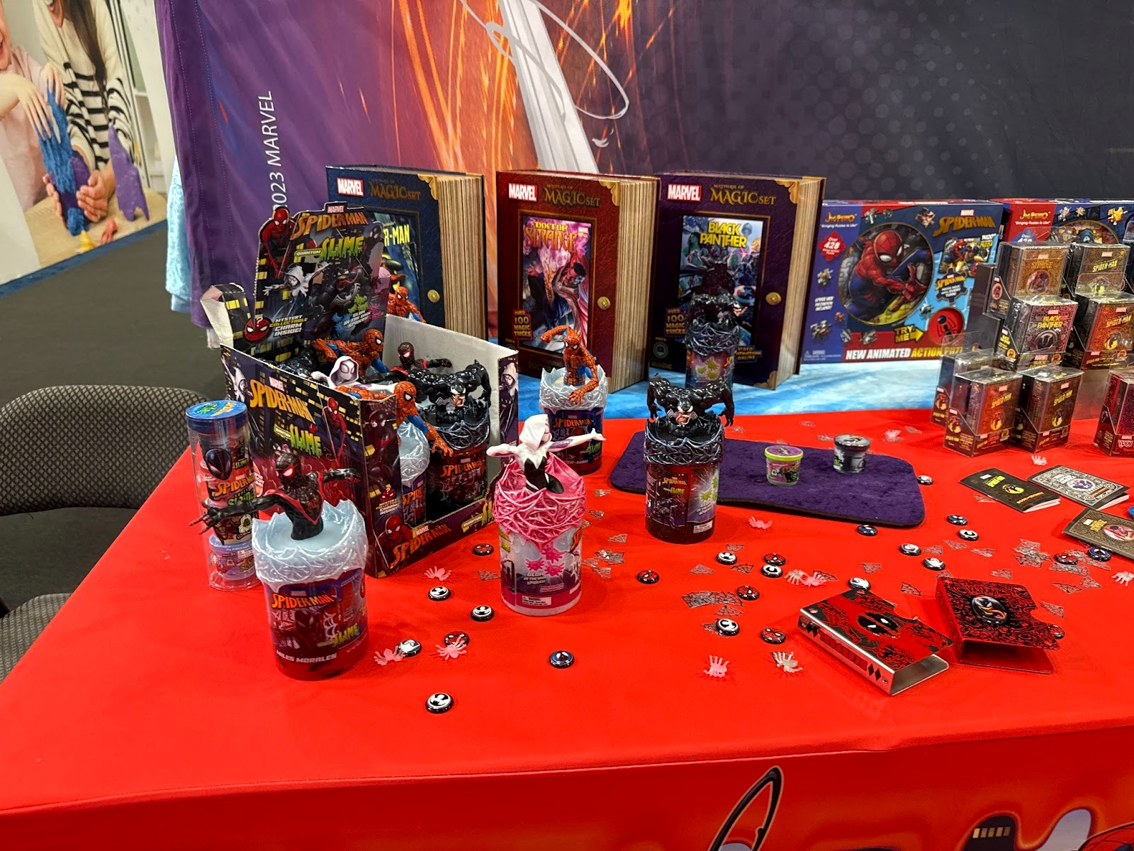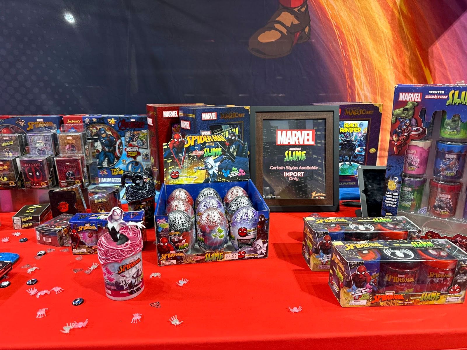 Fantasma’s Marvel Action Slime line adds tactile play to the booth, featuring stretchy, scented, non-toxic slime topped with character sculpts and collectible charms. Available individually for $12.99 in Spider-Man, Venom, Miles Morales, and Ghost-Spider variants.