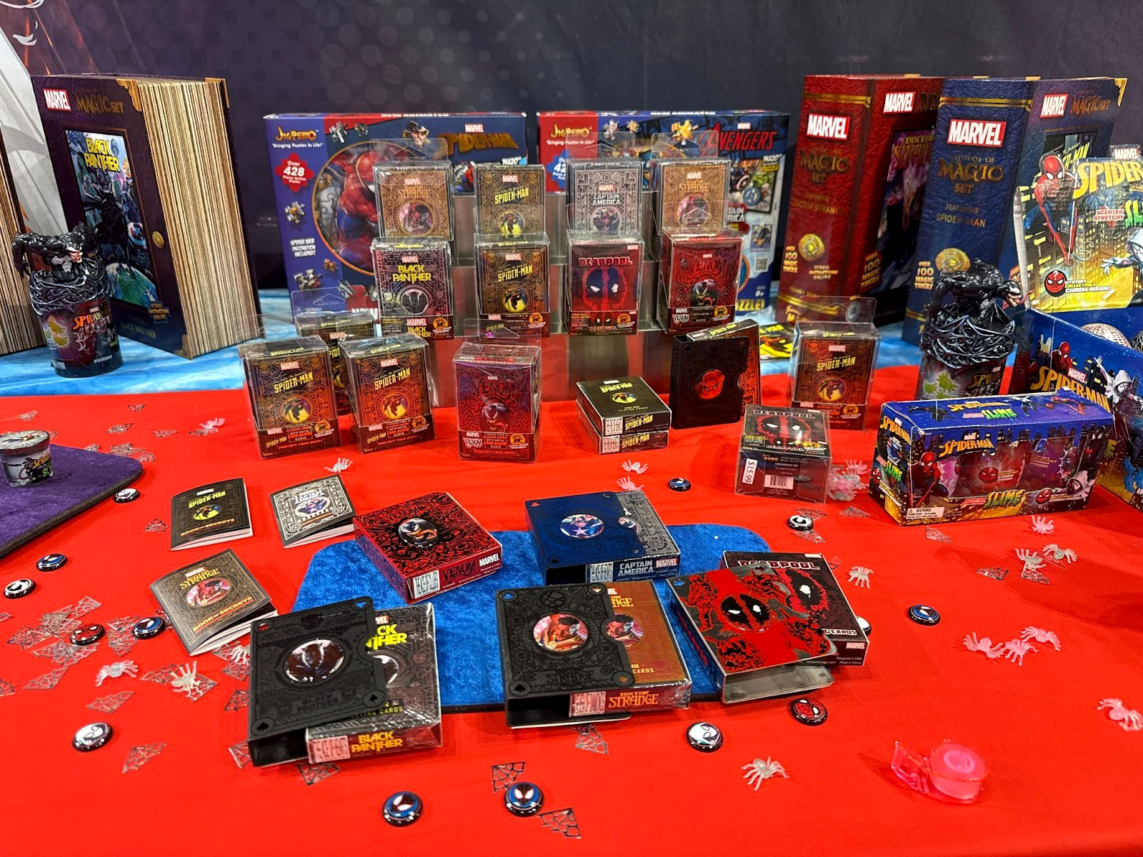 For aspiring magicians, Fantasma’s Marvel Magic Comic Book Sets ($39.99 each) were highlighted for Spider-Man, Black Panther, and Doctor Strange. Each hardcover-style set includes over 100 magic tricks integrated into character-themed props — such as invisible decks, teleportation tubes, magnetic escapes, and metal linking rings — with online instructions.