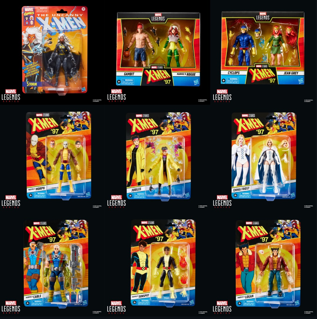 The X-Men '97 line expands dramatically with single figures like Storm, Morph, and Sunspot ($24.99 each) and 2-packs including Gambit & Rogue and Cyclops & Jean Grey ($49.99 each).