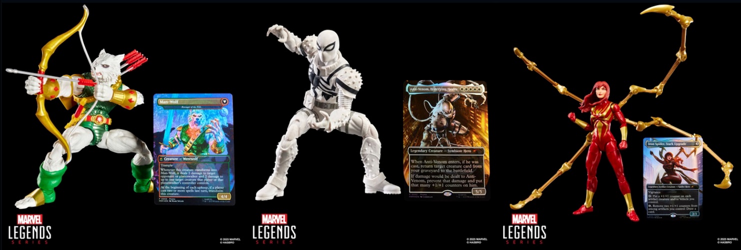 But perhaps the most exciting is a collaboration with another Hasbro powerhouse: Magic: The Gathering. This sub-line features figures like Battle-Damaged Spider-Man and Mary Jane Watson (Iron Spider) ($39.99 each), which each come with an exclusive, playable foil Magic card.