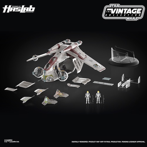 Star Wars fans have a massive new crowdfunding project to look forward to: The Vintage Collection LAAT/i Gunship. This highly detailed, 3.75-inch scale vehicle needs 8,000 backers to be funded at its $449.99 price point. The project includes two exclusive Clone Trooper Pilot figures, and stretch goals will unlock carded figures of Jedi Masters Coleman Trebor, Saesee Tiin, and Agen Kolar.
