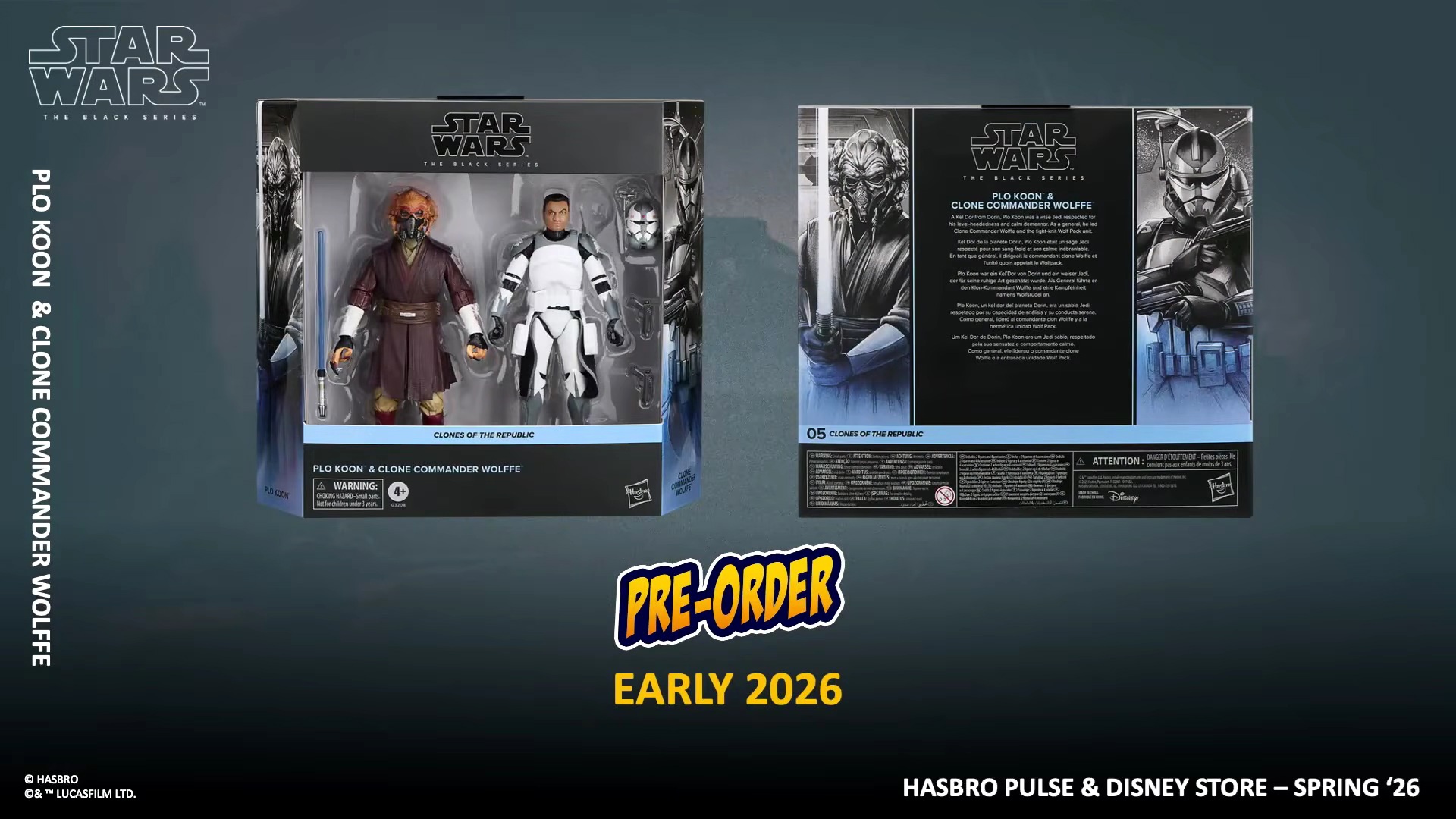 And the final reveal from today's Hasbro Pulse Fanstream was another two-pack for The Black Series-- this one featuring Jedi Master Plo Koon and Clone Commander Wolffe in their Star Wars: The Clone Wars looks.