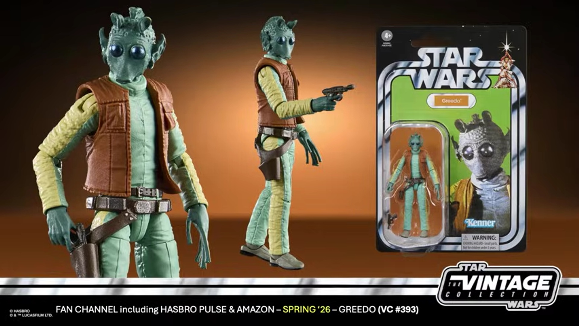 Next up, Hasbro revealed that The Vintage Collection (3 3/4-inch) Greedo action figure from its recent HasLab Mos Eisley Cantina playset will be made available individually on its own unique cardback.