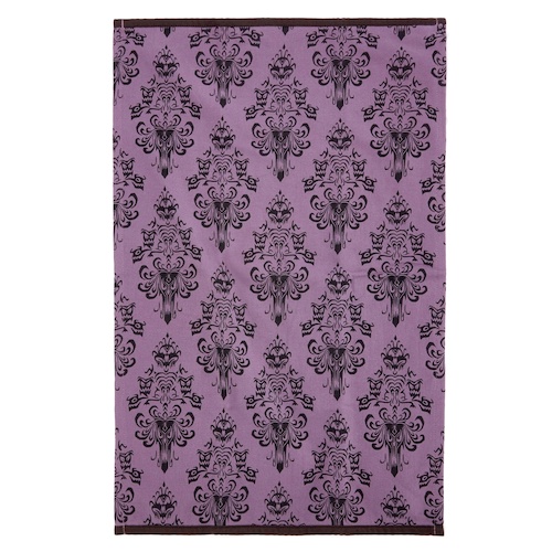 - The attraction’s famous purple wallpaper is featured across several pieces including a kitchen towel and throw blanket.