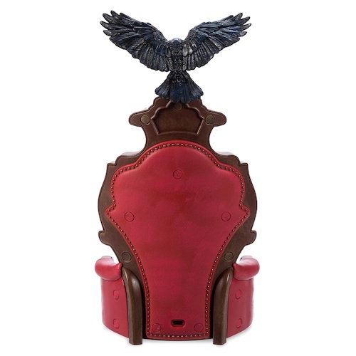 - Madame Leota’s mysterious orb rests on a large arm chair with two plates of candles, perfect for conducting a seance. A raven about to take flight is perched on top of the chair, and a spell book at the base completes the figure.