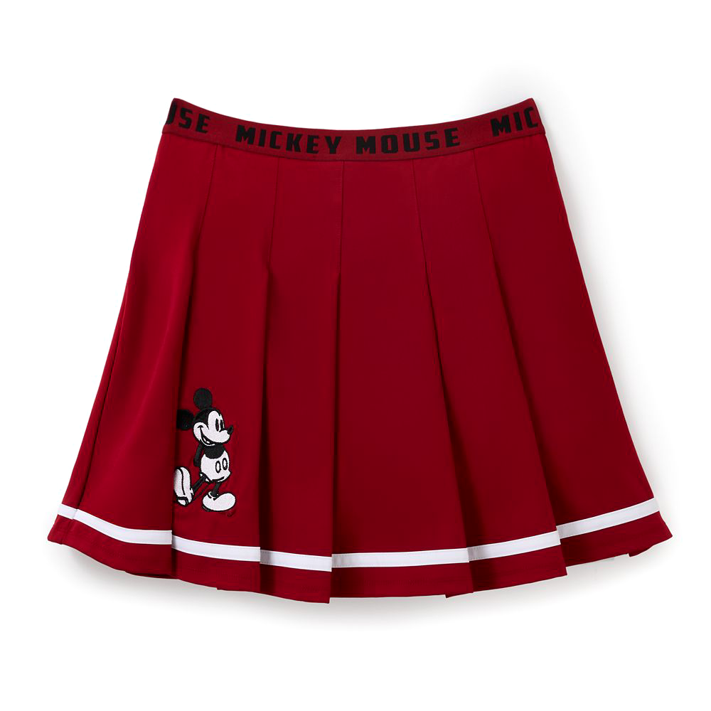 - To complete your look, choose the red pleated skort decorated with Mickey Mouse, or a red and grey V-neck cardigan reading "Mickey Mouse" to enhance your Disney wardrobe.