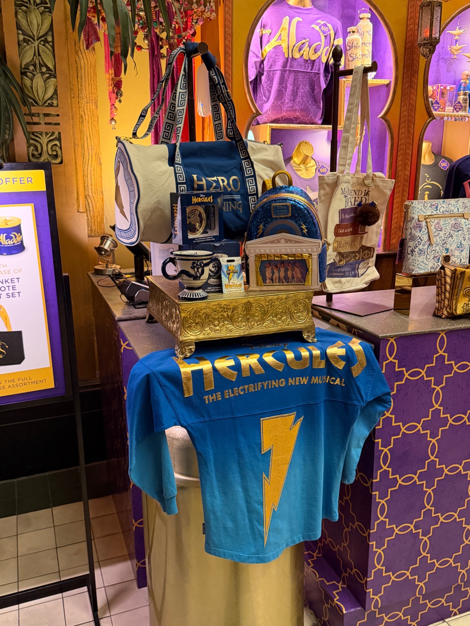 During today’s magical tour of the New Amsterdam Theatre, Laughing Place previewed some Hercules West End merchandise heading to D23: The Ultimate Disney Fan Event.
