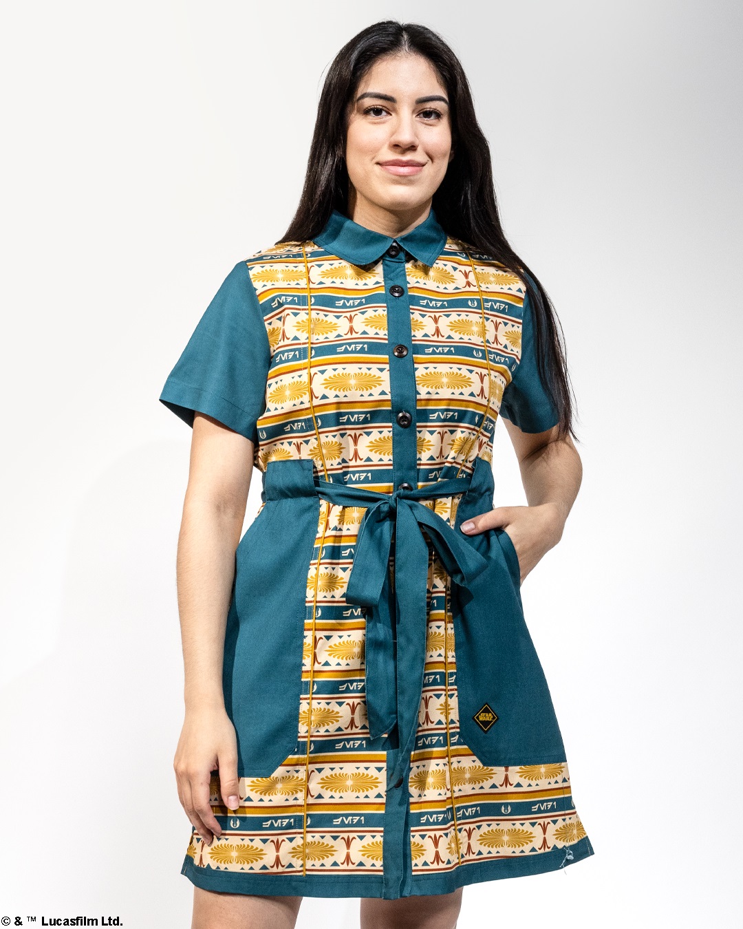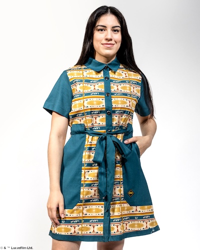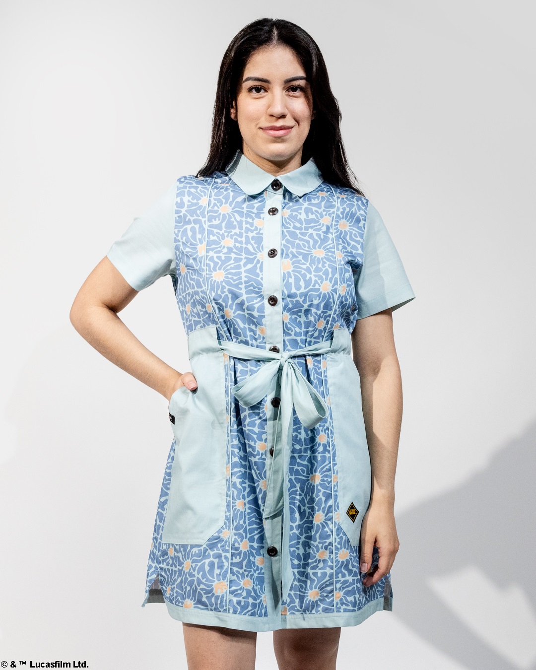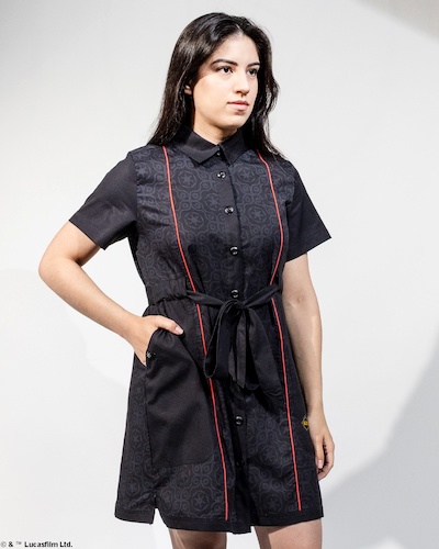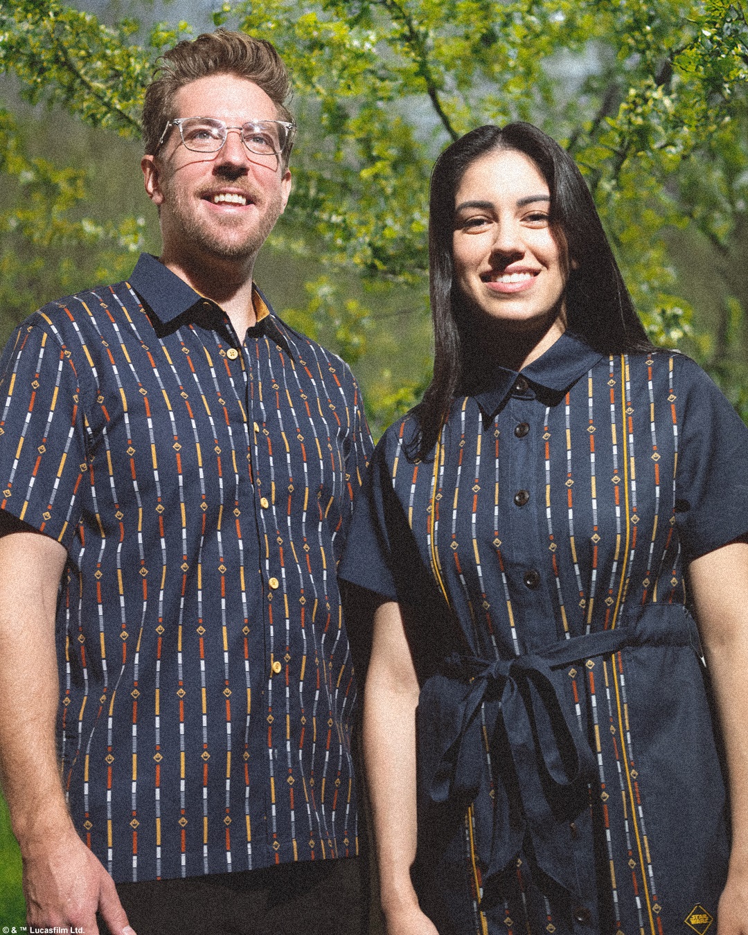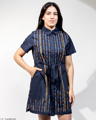- For a bold matching moment or a stylish standalone look, the Shirt Dresses (MSRP: $90) feature the same prints along with added details like color-blocked accents, side patch pockets, and self-fabric belts for a flattering silhouette. Don’t worry, the signature Star Wars™ woven patch is here too, this time placed on the pocket for the perfect finishing touch.