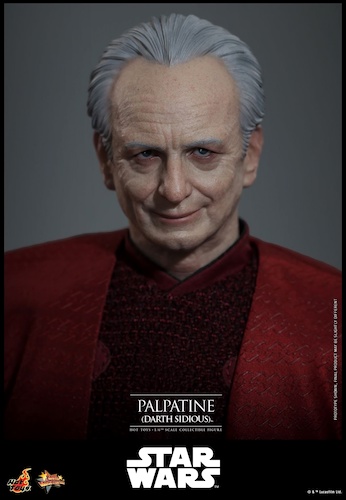 - Sideshow: “The Palpatine (Darth Sidious) 1/6 Scale Collectible Figure by Hot Toys features two detailed headsculpts capturing an authentic likeness of Sheev Palpatine / Darth Sidious as portrayed by Ian McDiarmid in Star Wars: Revenge of the Sith. One headsculpt shows Palpatine’s refined visage and the other reveals his terrifying face after his epic duel with Mace Windu. Both headsculpts utilize Hot Toys' innovative rolling eyeball design, allowing collectors to create nuanced expressions. This striking figure has 30 points of articulation and comes with a variety of hands to create a huge range of dynamic poses."