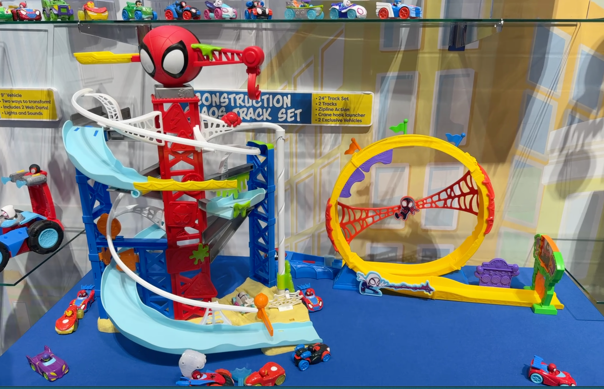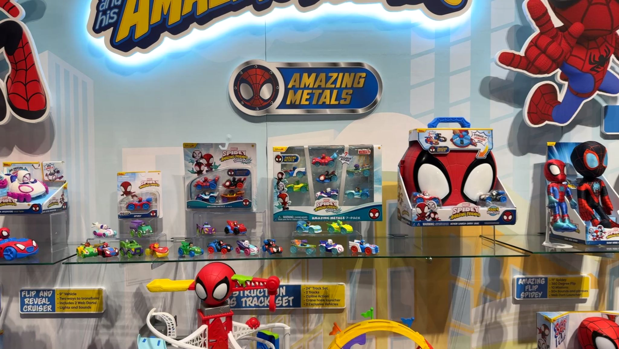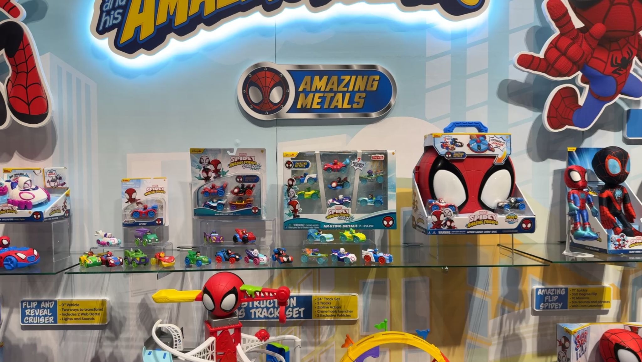 The Marvel Spidey and His Amazing Friends Construction Zone Chaos Track Set ($49.99) and Amazing Metals Super Loop Track Set ($39.99) bring high-energy, carnival-style racing action to the Spidey and His Amazing Friends lineup. The towering Construction Zone Chaos Track Set stands two feet tall and sends Spidey and Spin racing along separate paths, with Spidey hooking onto a zip line to knock Green Goblin off his perch while Spin barrels through Doc Ock’s Bridge and Green Goblin Goo, before the heroes reunite for a web-caging finale. Complementing it is the Amazing Metals Super Loop Track Set, a 28-inch race track featuring a launcher, rotating Spin figure, and a full 360-degree loop that sends Spidey’s Web Crawler soaring past carnival tents and crashing through double exit doors. Together, the sets deliver fast-paced, interactive play inspired directly by the hit Disney Junior series, complete with exclusive Amazing Metals vehicles for preschool-friendly superhero fun.