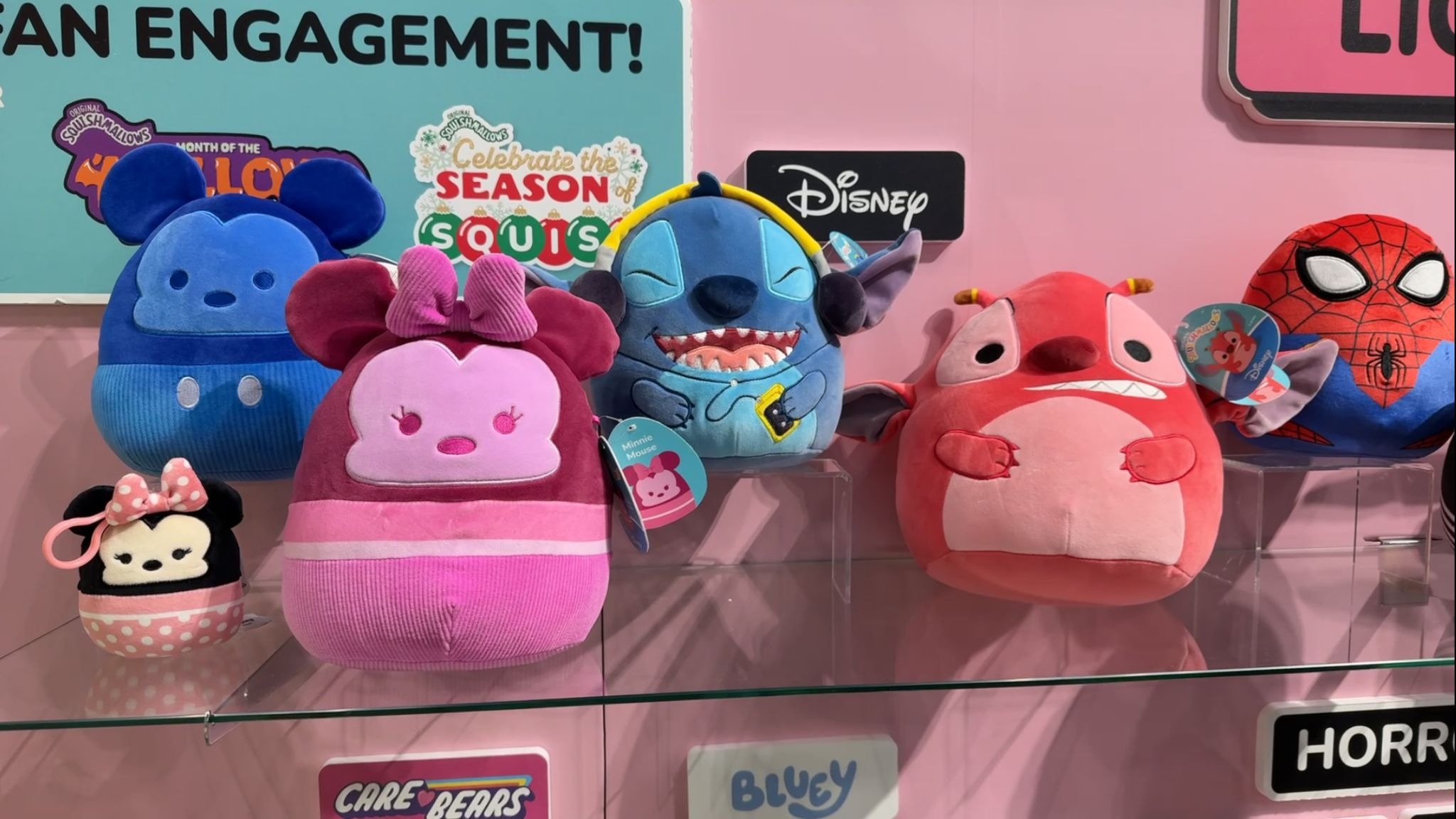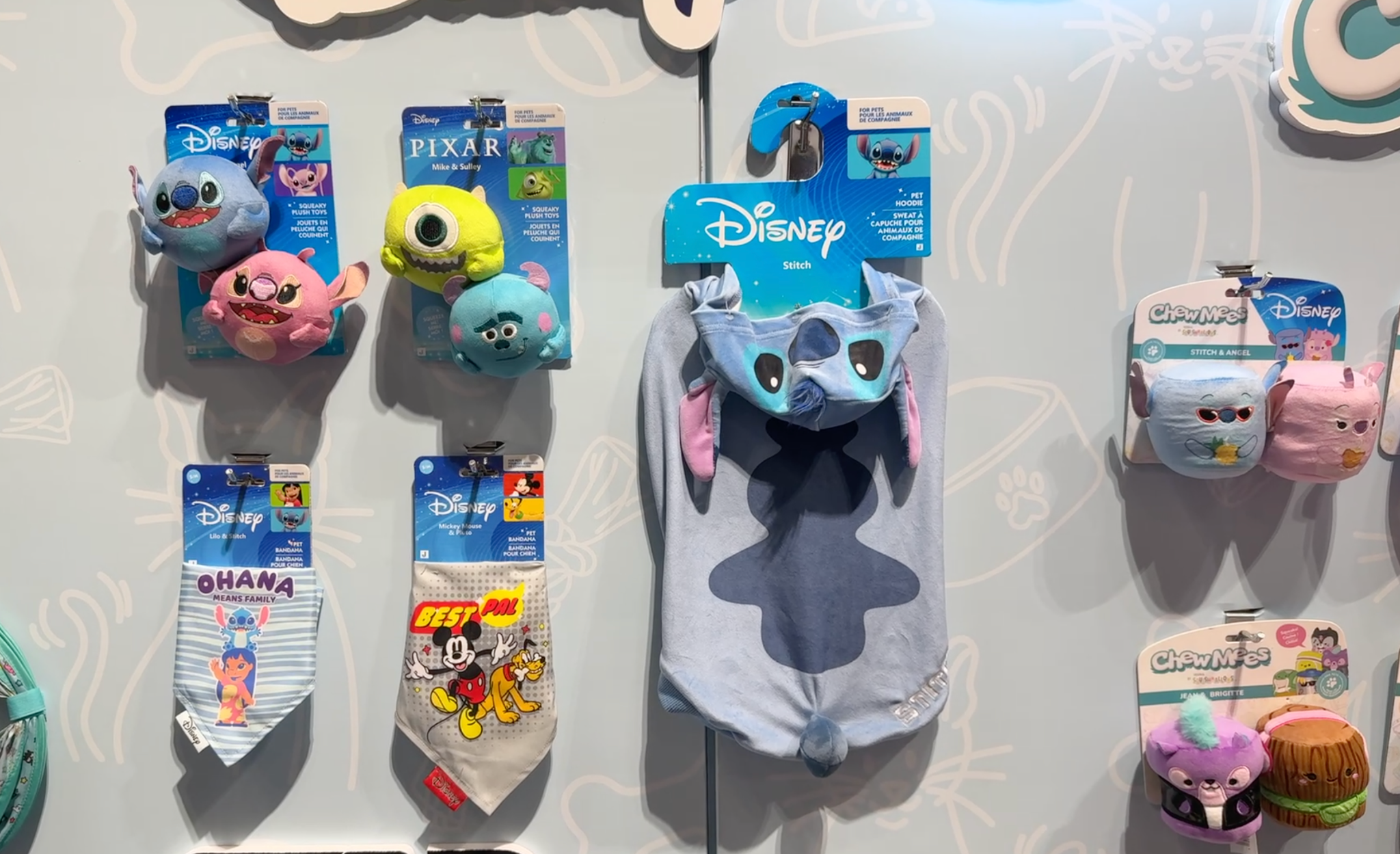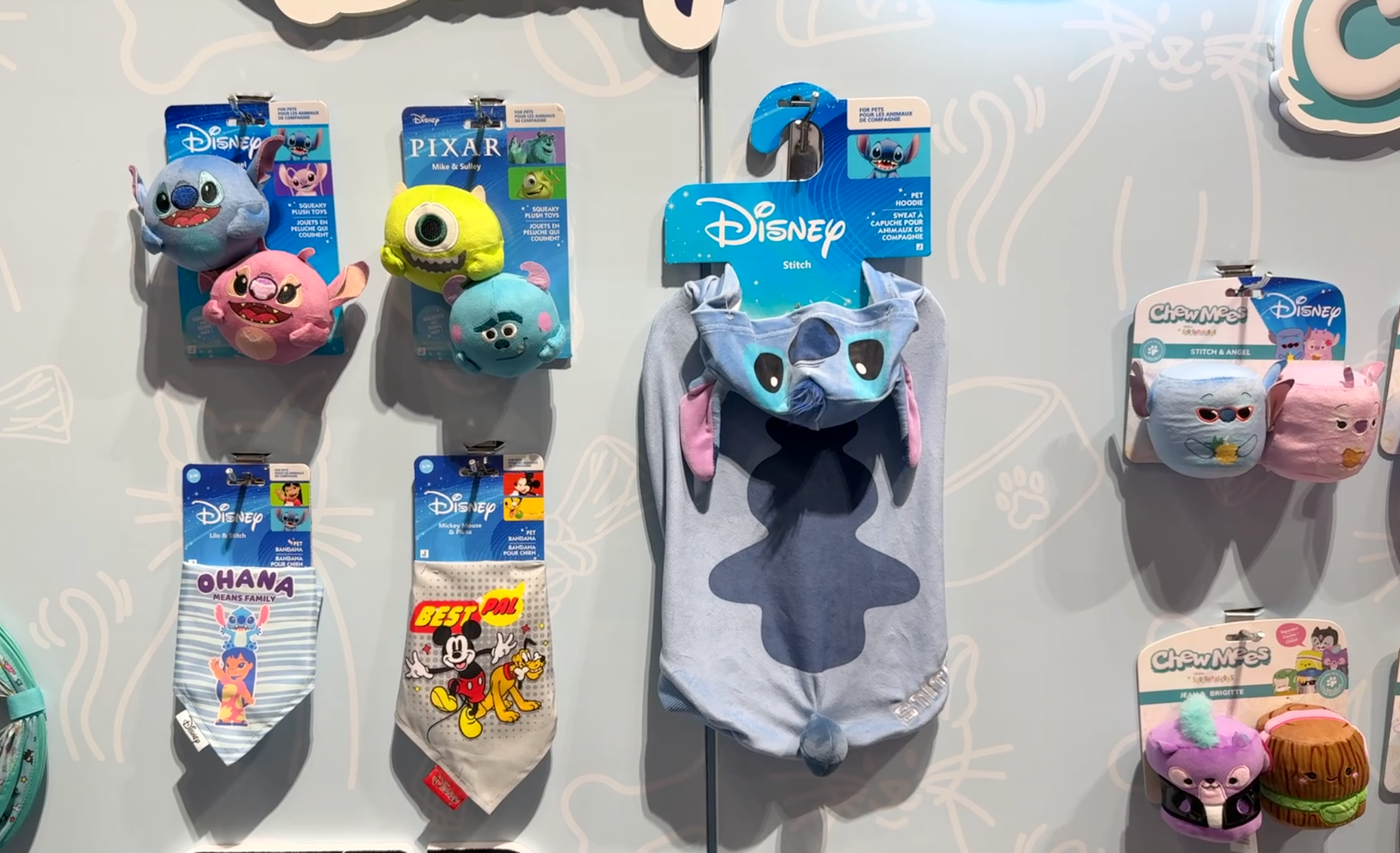 Disney fans can even extend the Squishmallows fun to their furry friends with the Angel + Stitch Chew Mees by Original Squishmallows Disney Pet Toy 2-Pack ($12.98). Designed for playful pups, these Lilo & Stitch-inspired pet toys feature reinforced seams for durability and soft, spot-clean-friendly fabric that works just as well for naptime as it does for tug-of-war. Also on display from Disney licensees were additional pet and lifestyle offerings, including Monsters, Inc. toys, along with Stitch-themed hoodies and bandanas, rounding out Jazwares’ growing presence in the pet category.