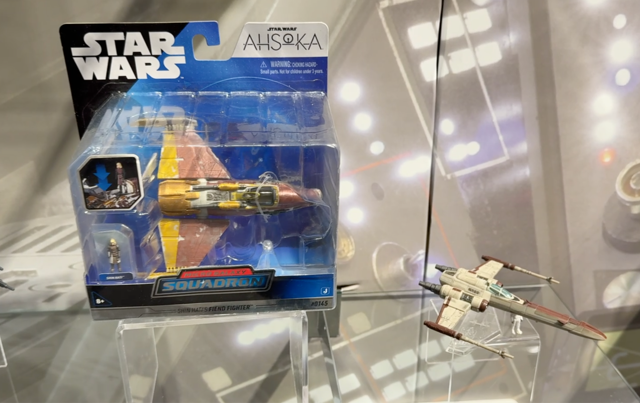 Additional Star Wars Micro Galaxy Squadron offerings on display included the Star Wars Micro Galaxy Squadron Fiend Fighter ($15.99), inspired by Star Wars: Ahsoka and featuring an opening cockpit, laser cannons, display stand, and an articulated Shin Hati micro figure, allowing fans to recreate the journey into the Unknown Regions. Sharing the spotlight was the larger Star Wars Micro Galaxy Squadron Republic Attack Force Bundle Set ($99.99), an Amazon-exclusive collection recreating the Battle of Geonosis with five Republic vehicles—including the AT-TE, LAAT, and Z-95 Headhunter—plus nine Clone Army micro figures, offering a substantial prequel-era expansion for collectors and young fans alike.