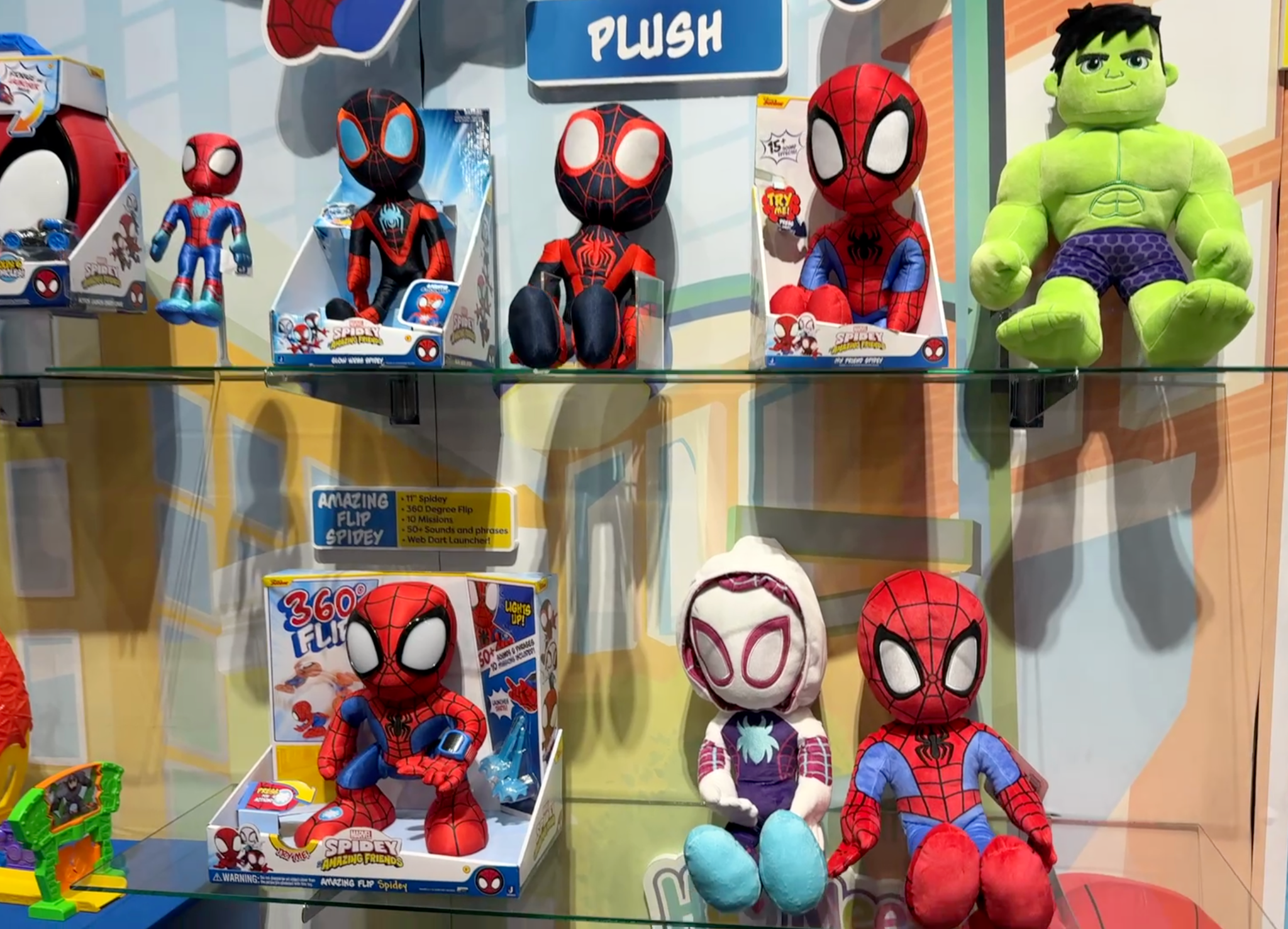 The Marvel Spidey and His Amazing Friends Amazing Flip Spidey brings big interactive energy to the preschool lineup with a deluxe 12-inch animatronic plush that literally flips into action. At the press of Spidey’s foot emblem, his eyes light up, he calls out “Go Webs Go!,” and launches into a full 360-degree flip before landing back in position, ready to go again. With more than 50 sounds and phrases tied to 10 different missions, plus a light-up wrist commlink that delivers mission updates from Webquarters and activates a built-in web dart launcher, this Spidey is designed for repeat play and hands-on superhero storytelling inspired by the hit Disney Junior series.
