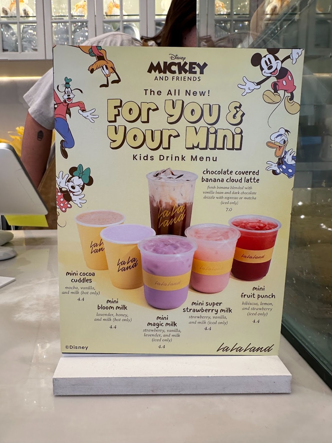 Now, of course, the main attraction was the new Mickey & Friends x La La Land offerings. Debuting today, August 19th, at all 23 of the coffee shop’s locations, La La Land is introducing 5 unique mini beverages, special mini toasts, a specialty coffee drink, and a new kid’s meal called La La’s Mini Meal.