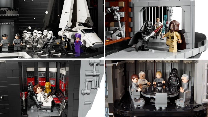 - The set is a unique mashup of both the first Death Star from A New Hope and the second from Return of the Jedi, featuring iconic rooms like the retractable bridge, the trash compactor room, the conference room, and a hangar bay.