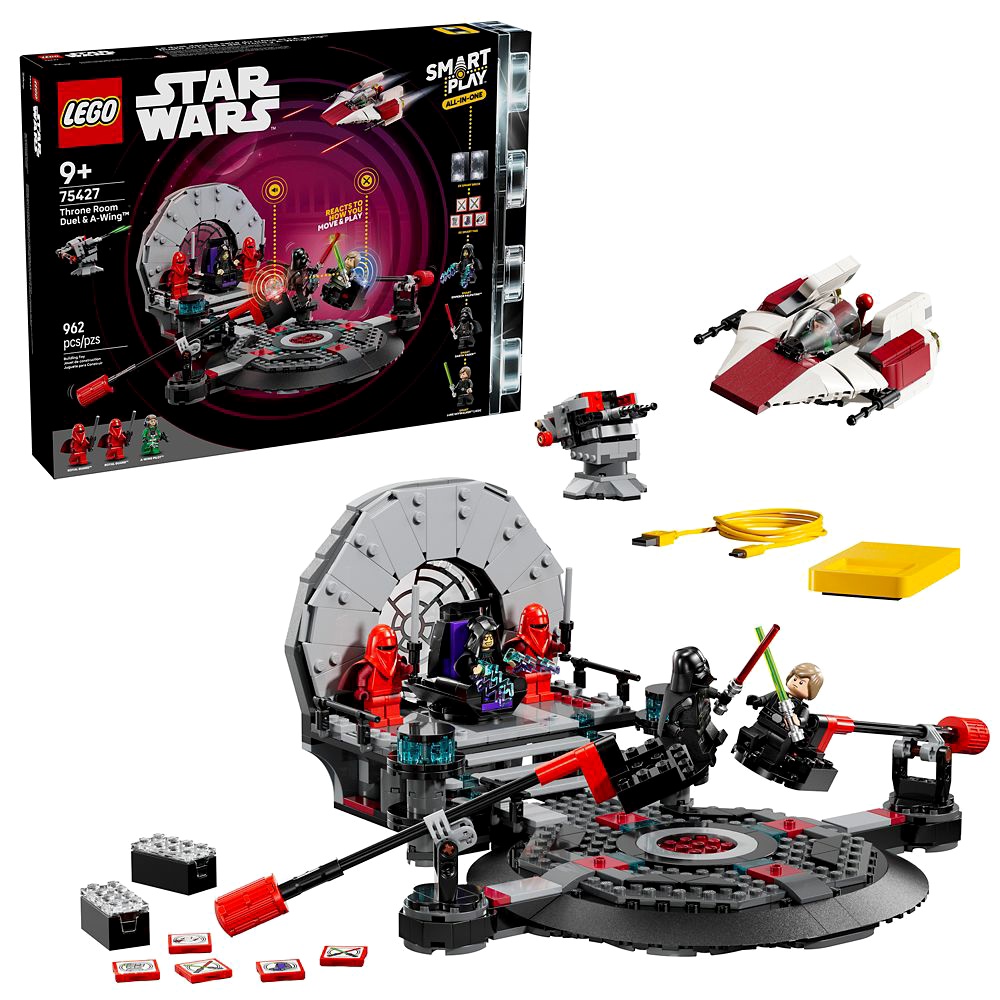 - LEGO Star Wars SMART Play Throne Room Duel & A-Wing (set #75427) ($159.99) - Includes two SMART Bricks, SMART Minifigures of Emperor Palpatine, Darth Vader, and Luke Skywalker (Jedi), plus an A-Wing Pilot Minifigure and two Royal Guard Minifigures, two SMART Tags, and one SMART Charger.