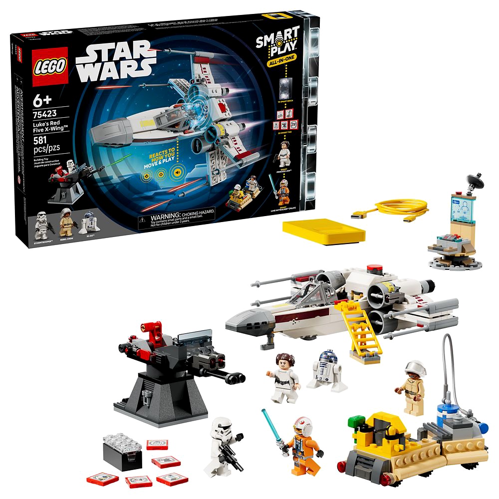 - LEGO Star Wars Smart Play Luke's Red Five X-Wing (set #75423) ($89.99) - Includes one SMART Brick, SMART Minifigures of Princess Leia and Luke Skywalker (X-Wing Pilot), a Stormtrooper Minifigure, a Rebel Crew Minifigure, an R2-D2 Minifigure, five SMART Tags, and one SMART Charger.