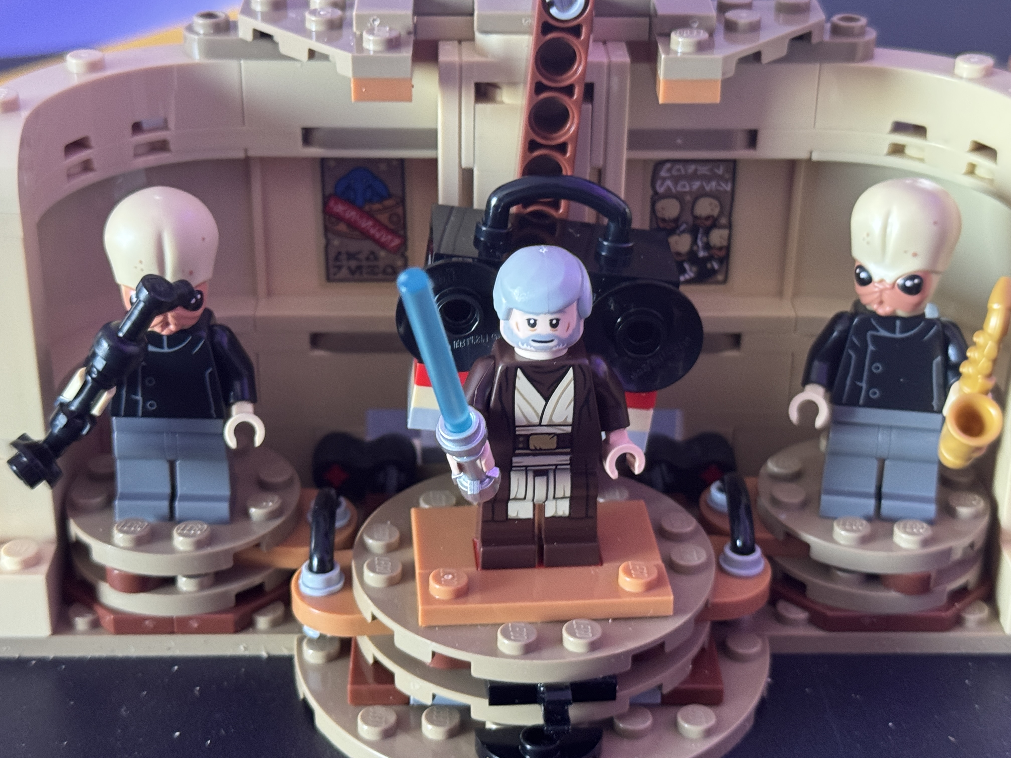 Participants are asked to, well, participate and pop the interactive SMART Brick into the set - with the smart brick being able to trigger different features on each playset. For example, with the Cantina band, there's a stage setup to activate and play with, triggering the iconic cantina music. Even more fun, the music changes - karaoke style - based on what minifigure is on the stage. So if you have Chewbacca on stage, its going to sound different compared to when Ben Kenobi is on the stage.