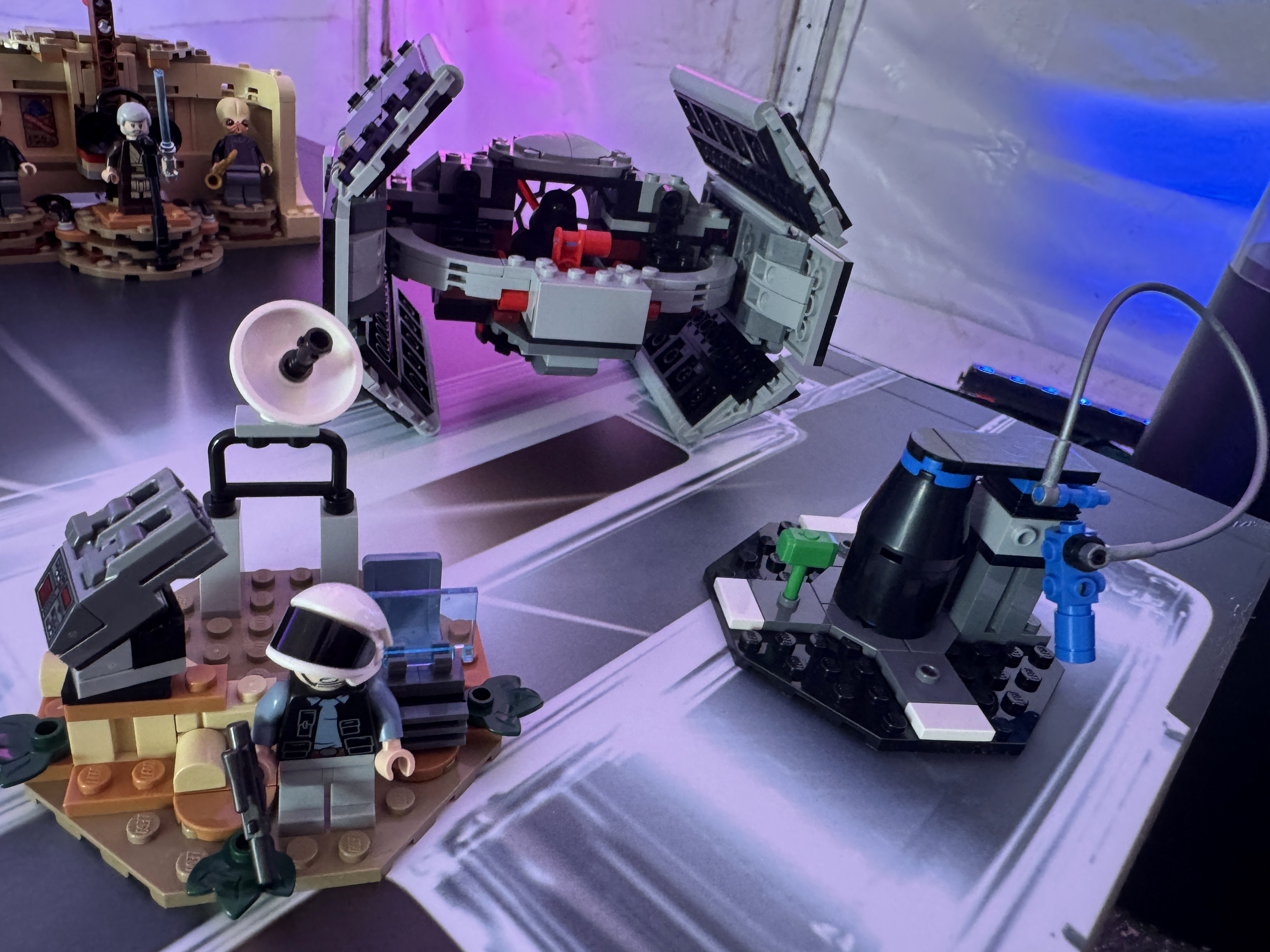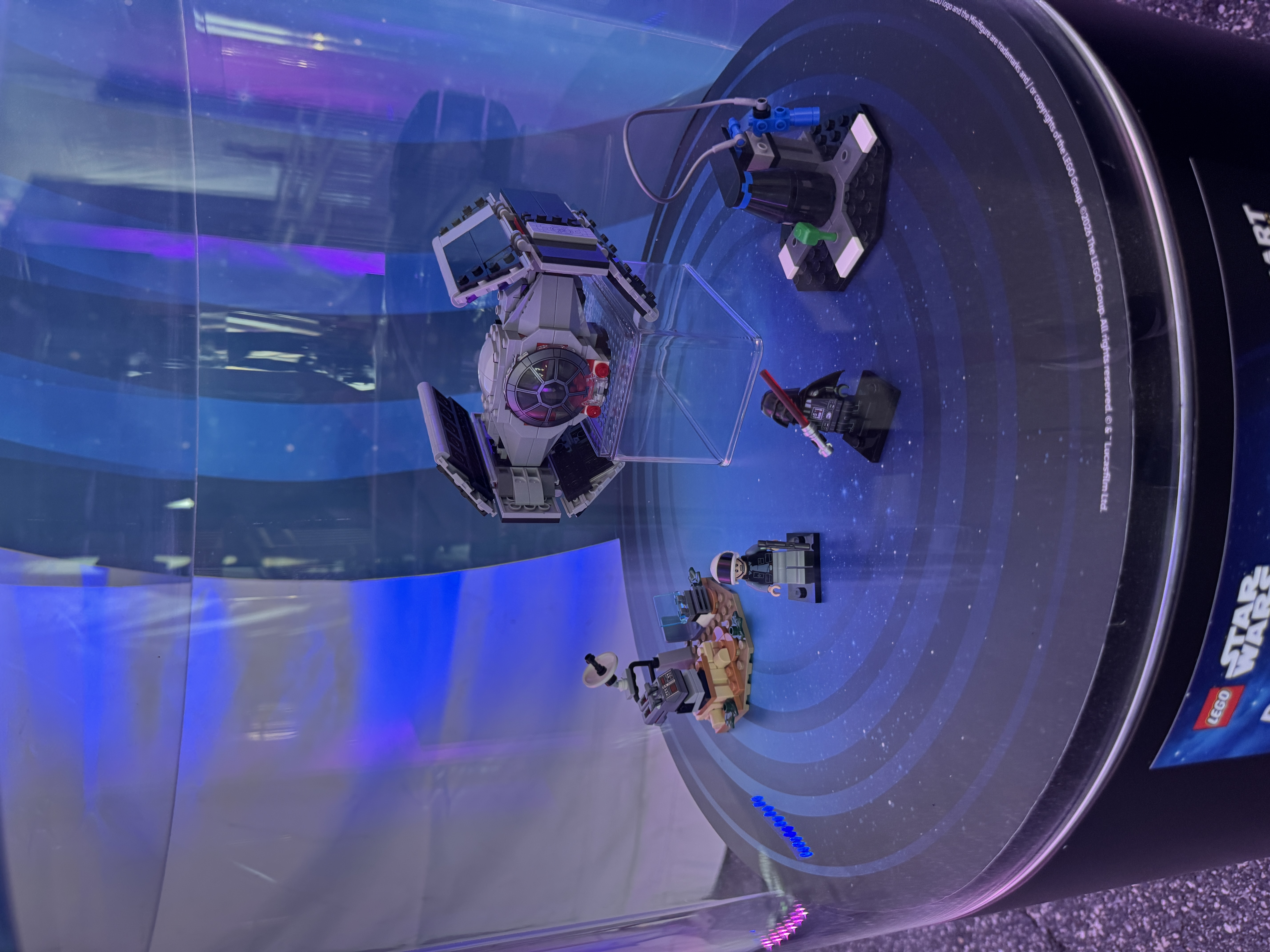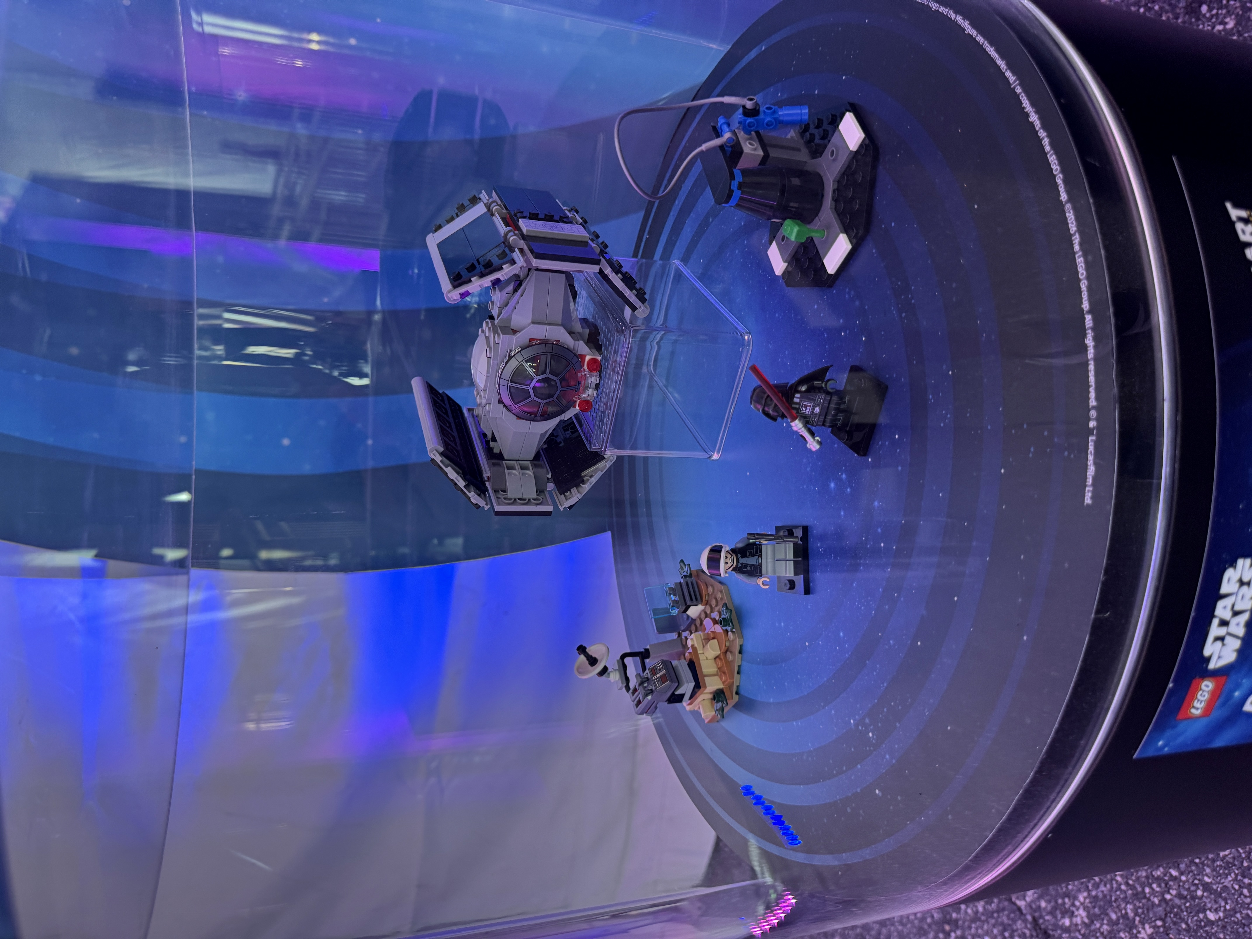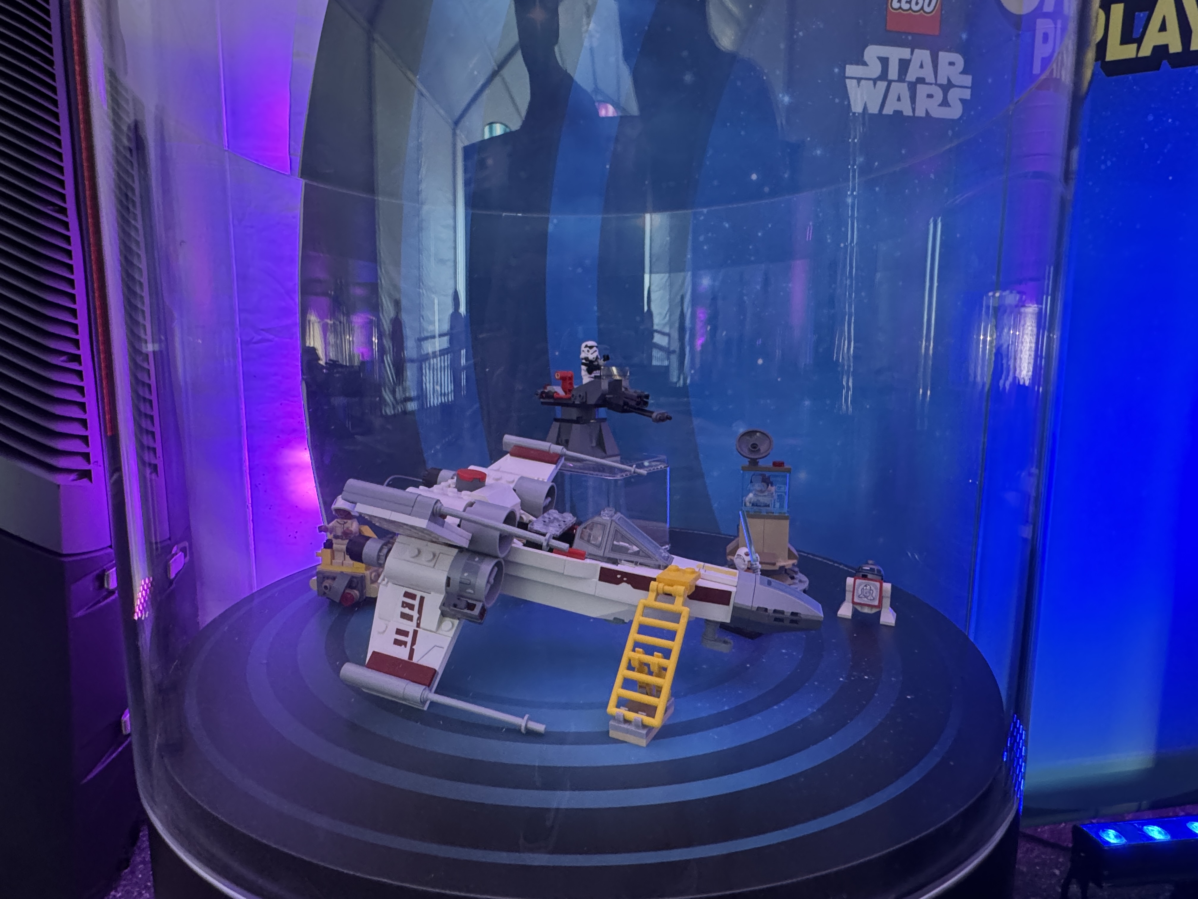There is a sensory notice, because once inside the experience you are surrounded by digital displays and screens that bring some LEGO Star Wars fun to life. Inside either experience, actors are waiting to teach you the ways of the Light Side or the Dark Side. Both feature moments celebrating the various LEGO Star Wars play sets featuring the SMART Play technology. The Light Side features a Cantina Band playset, as well as a TIE Fighter and X-Wing model. The Dark Side features a chance to play with a Throne Room playset, as well as the TIE Fighter and X-Wing models.