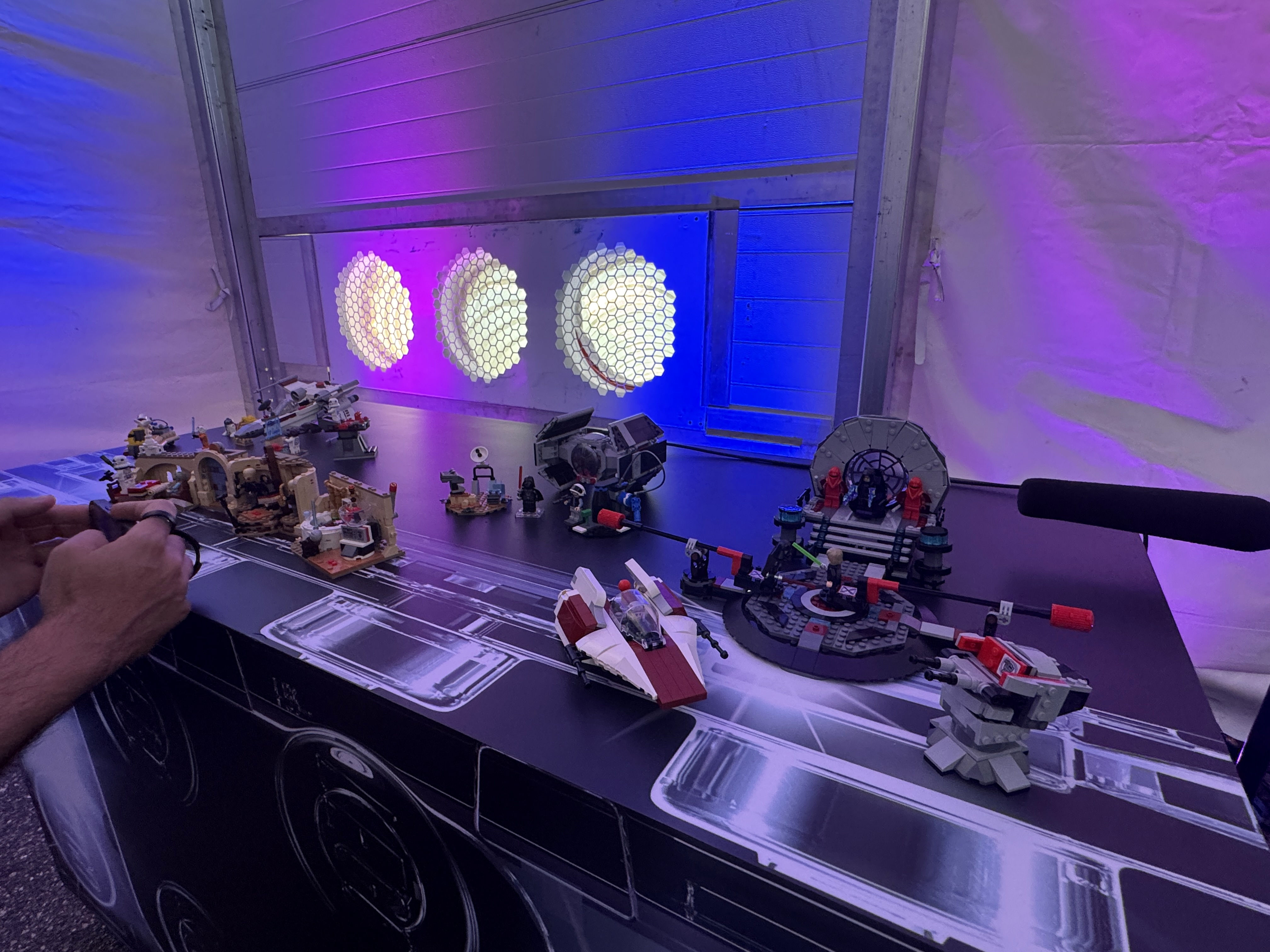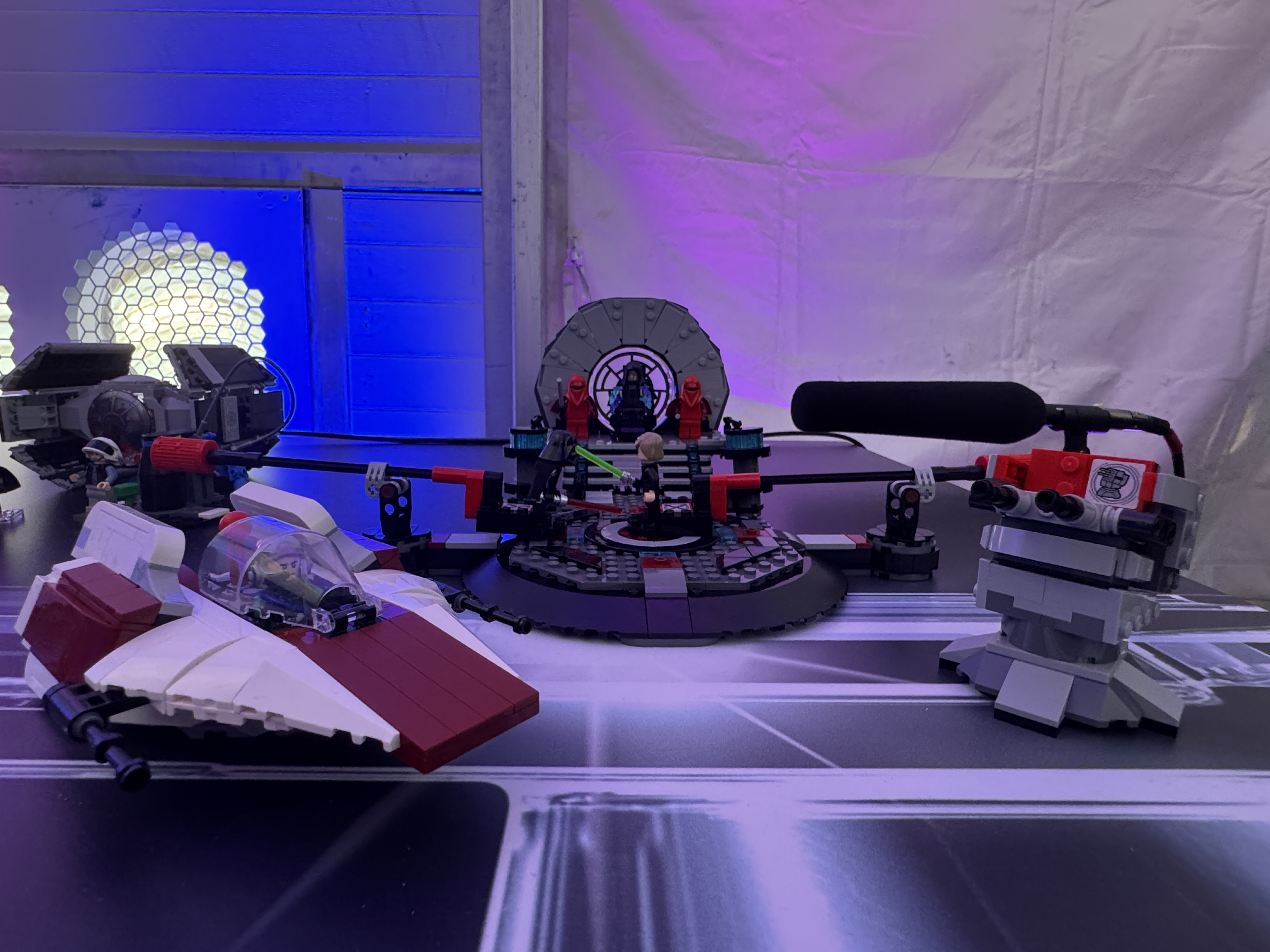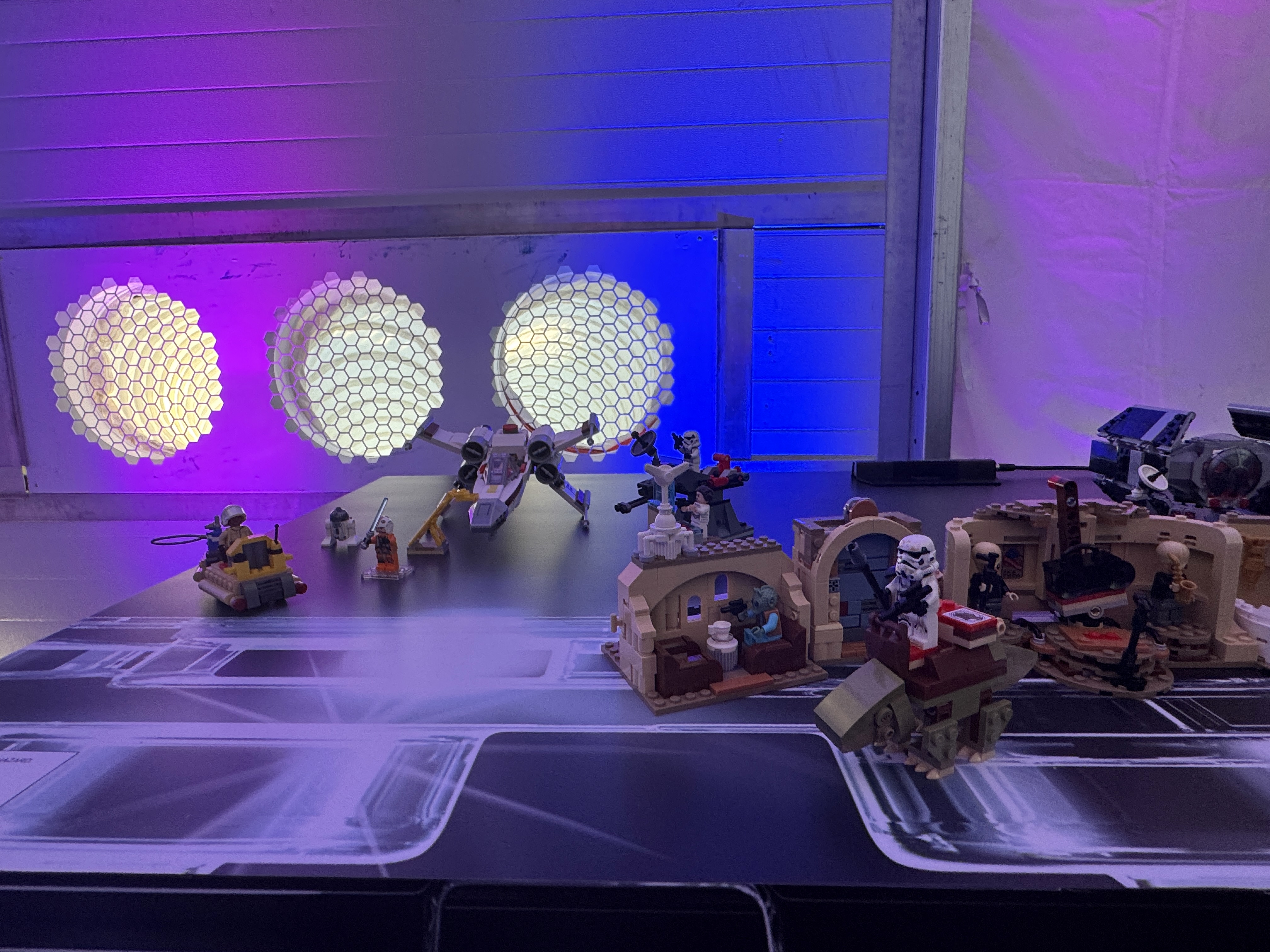 There is a sensory notice, because once inside the experience you are surrounded by digital displays and screens that bring some LEGO Star Wars fun to life. Inside either experience, actors are waiting to teach you the ways of the Light Side or the Dark Side. Both feature moments celebrating the various LEGO Star Wars play sets featuring the SMART Play technology. The Light Side features a Cantina Band playset, as well as a TIE Fighter and X-Wing model. The Dark Side features a chance to play with a Throne Room playset, as well as the TIE Fighter and X-Wing models.