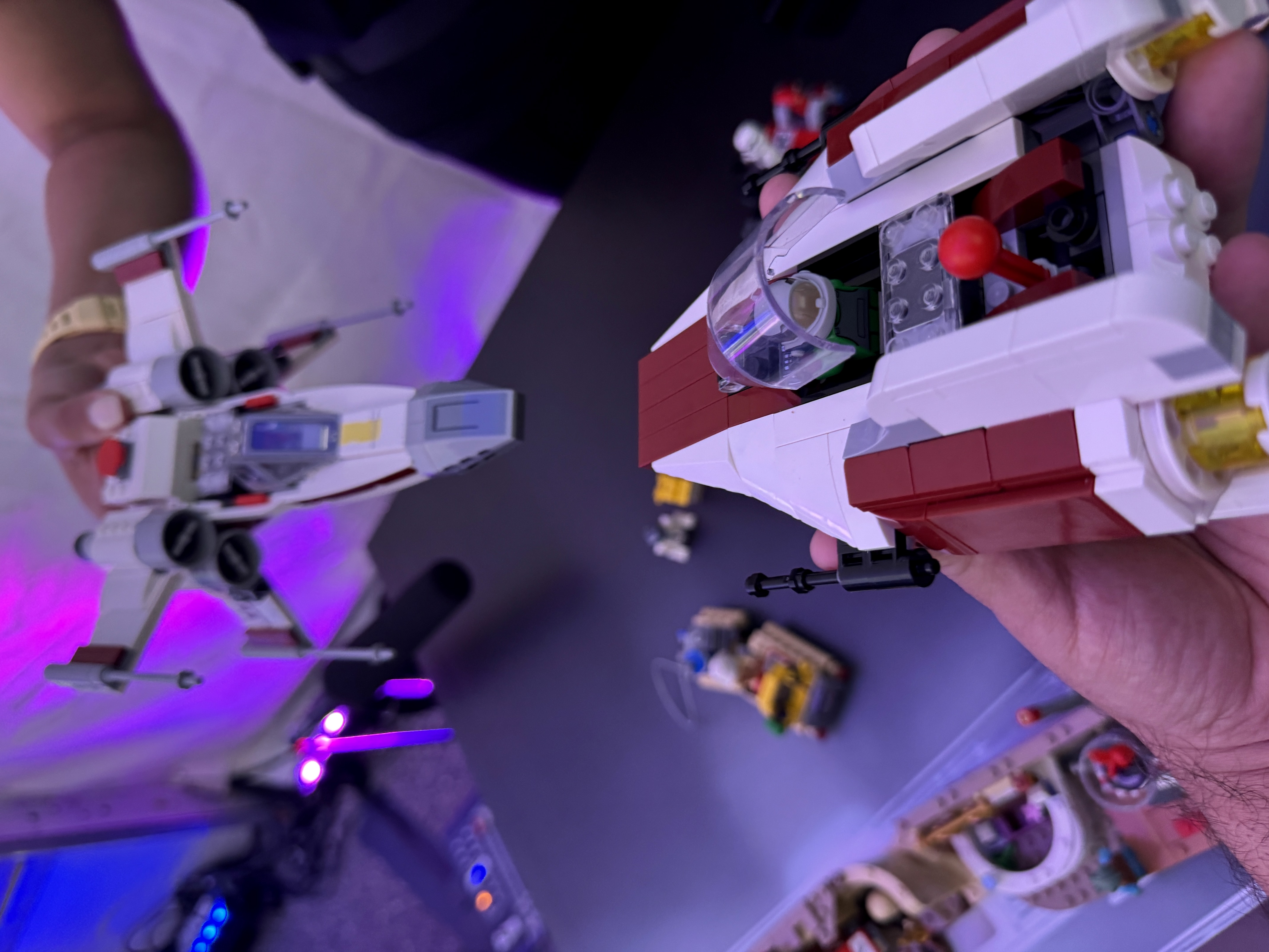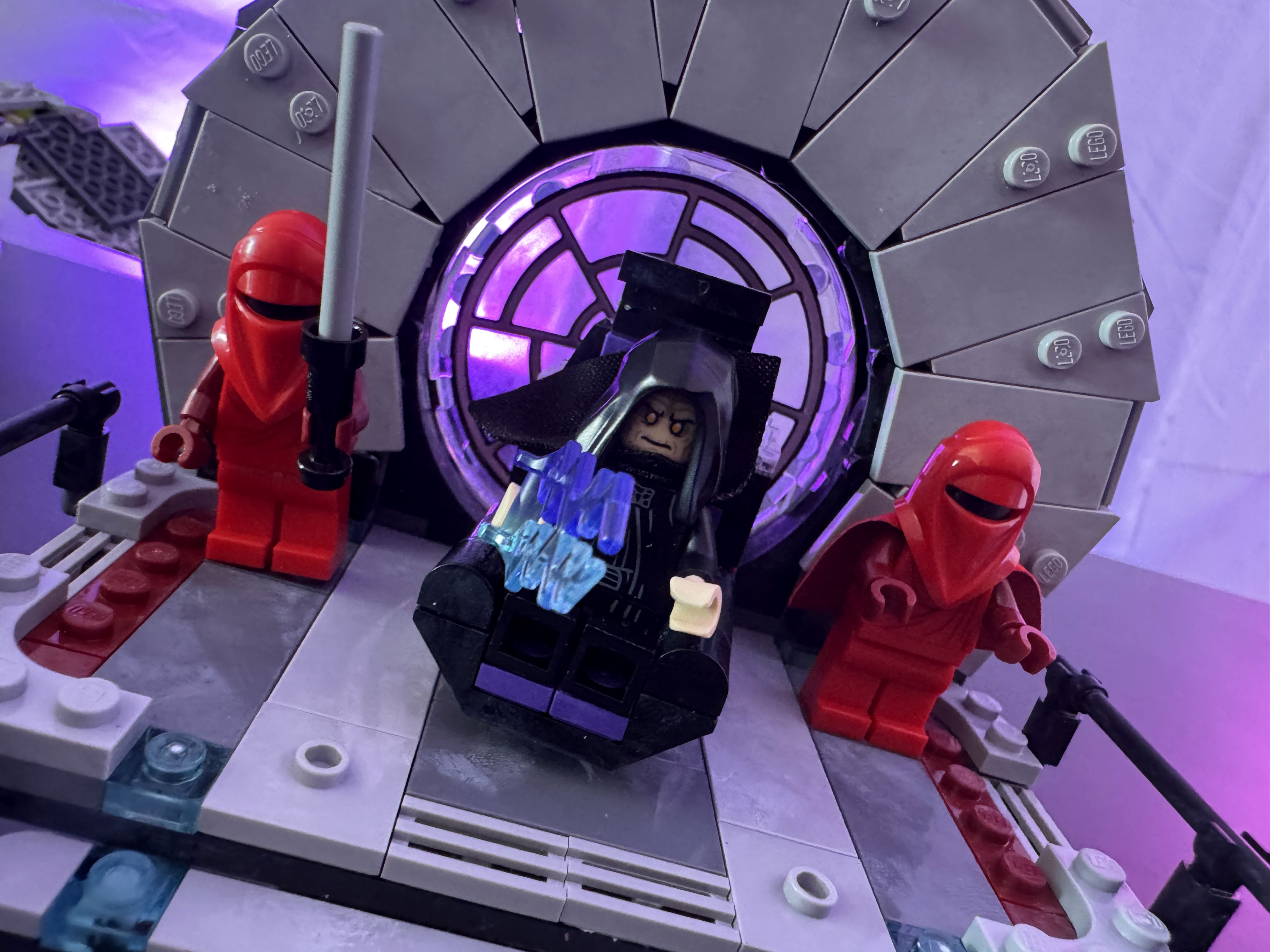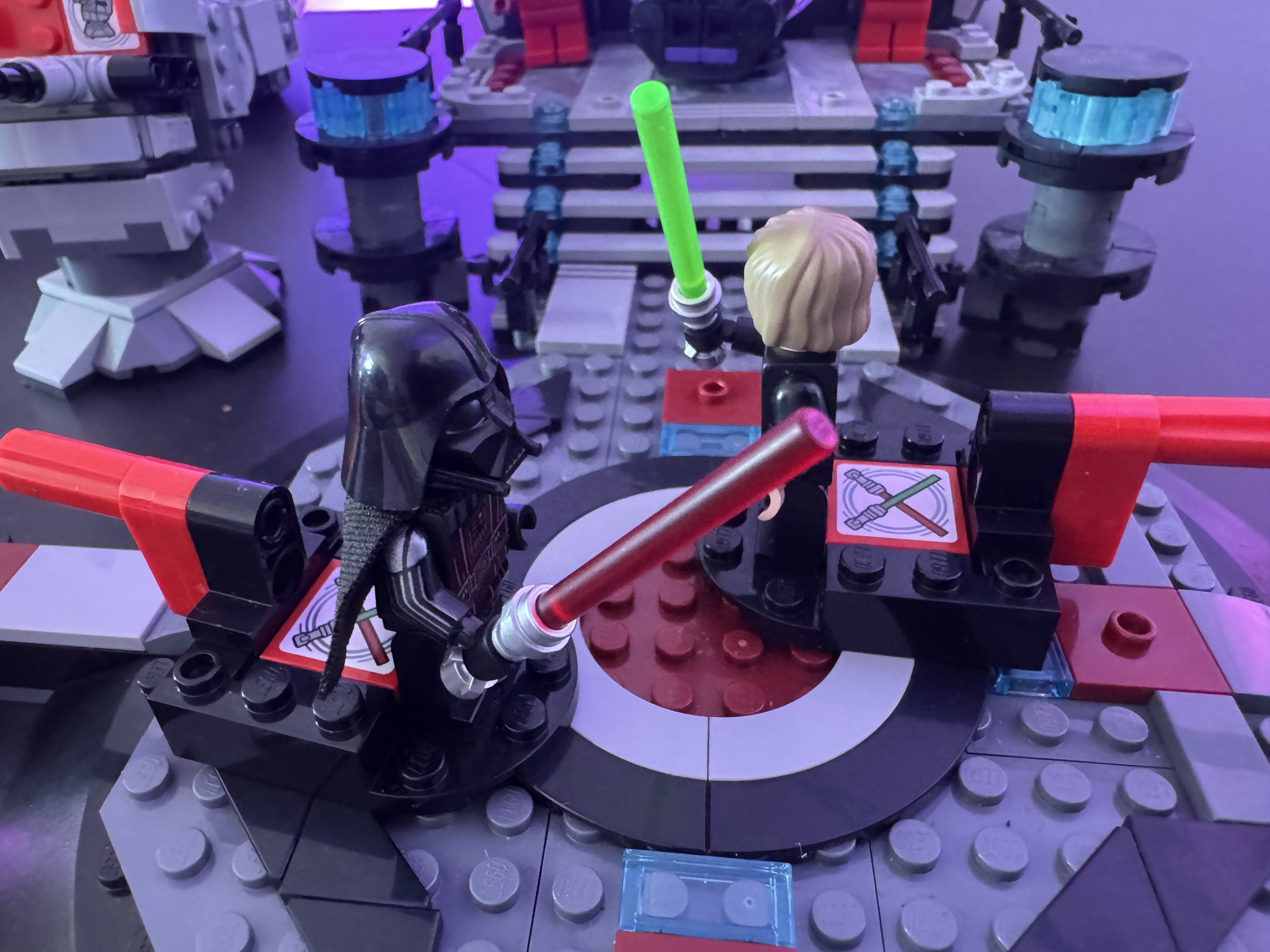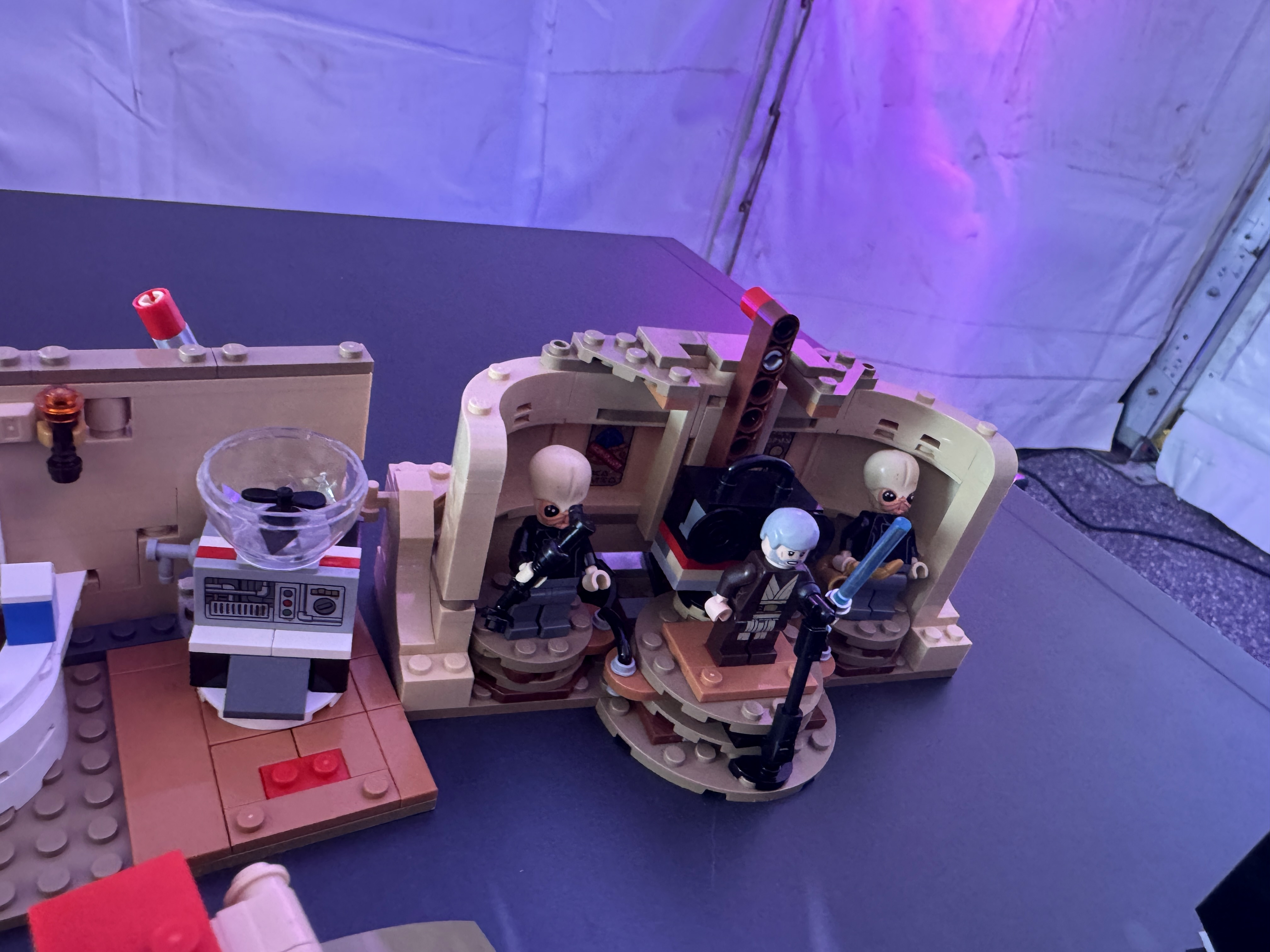There is a sensory notice, because once inside the experience you are surrounded by digital displays and screens that bring some LEGO Star Wars fun to life. Inside either experience, actors are waiting to teach you the ways of the Light Side or the Dark Side. Both feature moments celebrating the various LEGO Star Wars play sets featuring the SMART Play technology. The Light Side features a Cantina Band playset, as well as a TIE Fighter and X-Wing model. The Dark Side features a chance to play with a Throne Room playset, as well as the TIE Fighter and X-Wing models.